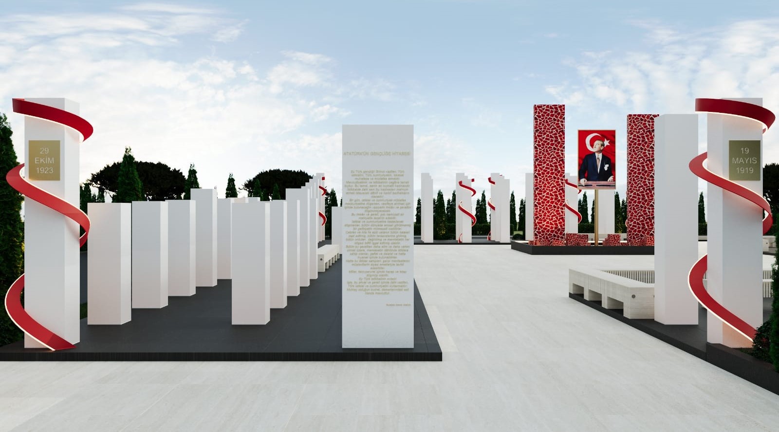 Cumhuriyetimizin 100 yılının 100 farklı biçimde ifade edileceği ‘100. Yıl Anıtı’ bu anlamda da Türkiye’de ilk olma özelliği taşıyor. Milli mücadelenin başlangıcından günümüze dek yaşanan süreçlerin, farklı görsel ve rölyeflerle ifade edileceği özgün çalışma, kısa süre içinde tamamlanarak bölge halkının hizmetine sunulacak.