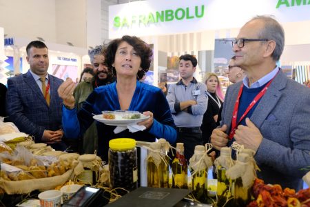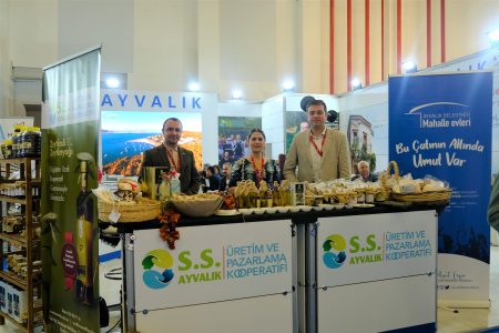Ayvalık Belediyesi standının ziyaretçileri arasında İzmir Büyükşehir Belediye Başkanı Tunç Soyer’in eşi Neptün Soyer’de yer aldı. Kooperatif çalışmaları hakkında bilgi alan Soyer, ikram edilen mezelere de tam puan verdi.