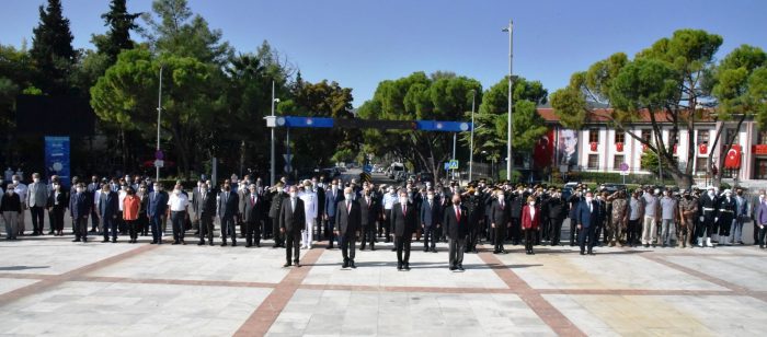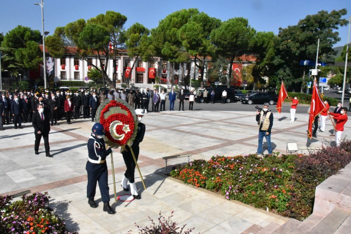 Atatürk Anıtı’na Valilik, Büyükşehir Belediye Başkanlığı ve Türkiye Harp Malulü ve Gazileri Şehit Dul ve Yetimler Derneği Muğla Temsilciliği çelenkleri konuldu, saygı duruşunda bulunuldu ve İstiklal Marşı okundu.