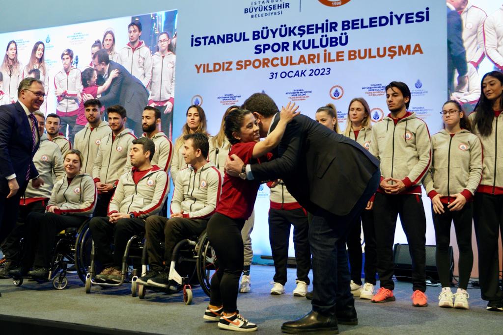 Konuşmalardan sonra Keleş, İmamoğlu ve Sözen’e, arkalarında isimlerinin yazılı olduğu 34 sırt numaralı İBB SK formalarını hediye etti. Ardından İBB SK’nin şampiyon sporcuları sahneye davet edildi ve anı fotoğrafları çekildi.