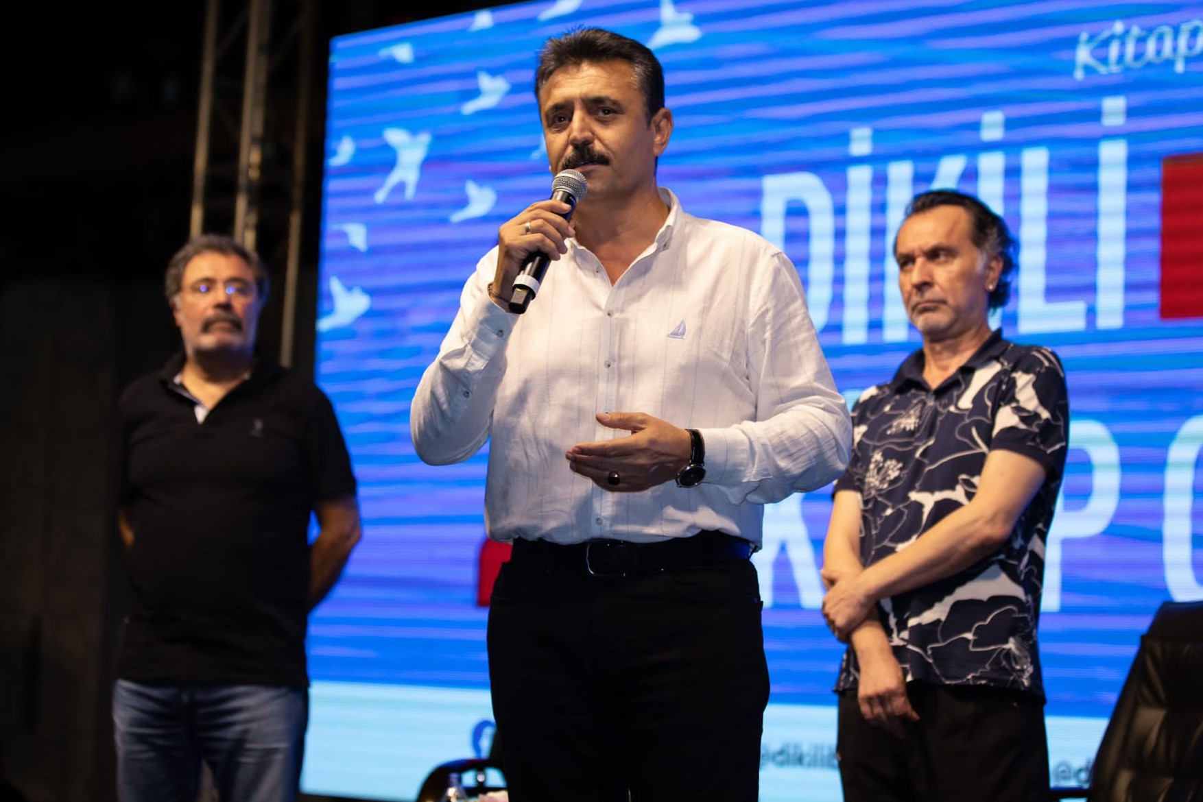 Dikili’mizde yaşayan 40 yerel şair ve yazarlarımıza da imza günleri fırsatını sunduk Dikili’mizin sokaklarında edebiyatın, şiirin konuşulduğu, müzik seslerinin yankılandığı kitap günlerinde hep birlikte çok güzel bir hikâye yazdık. Ülkemizde yaşanan ekonomik sıkıntılara rağmen 20 bin üzerinde kitap satışının gerçekleşmesi bizleri çok mutlu etti. İş birliğinden dolayı Yayıncılar Kooperatifi’ne, 9 gün boyunca bizleri yalnız bırakmayarak kültür ve edebiyat şenliğimizi anlamlı kılan tüm yurttaşlarımıza ve emeği geçen herkese sonsuz teşekkürlerimi sunuyorum.” diyerek kültürel ve sosyal projelerde somut adımlar atmaya devam edeceklerini vurguladı.