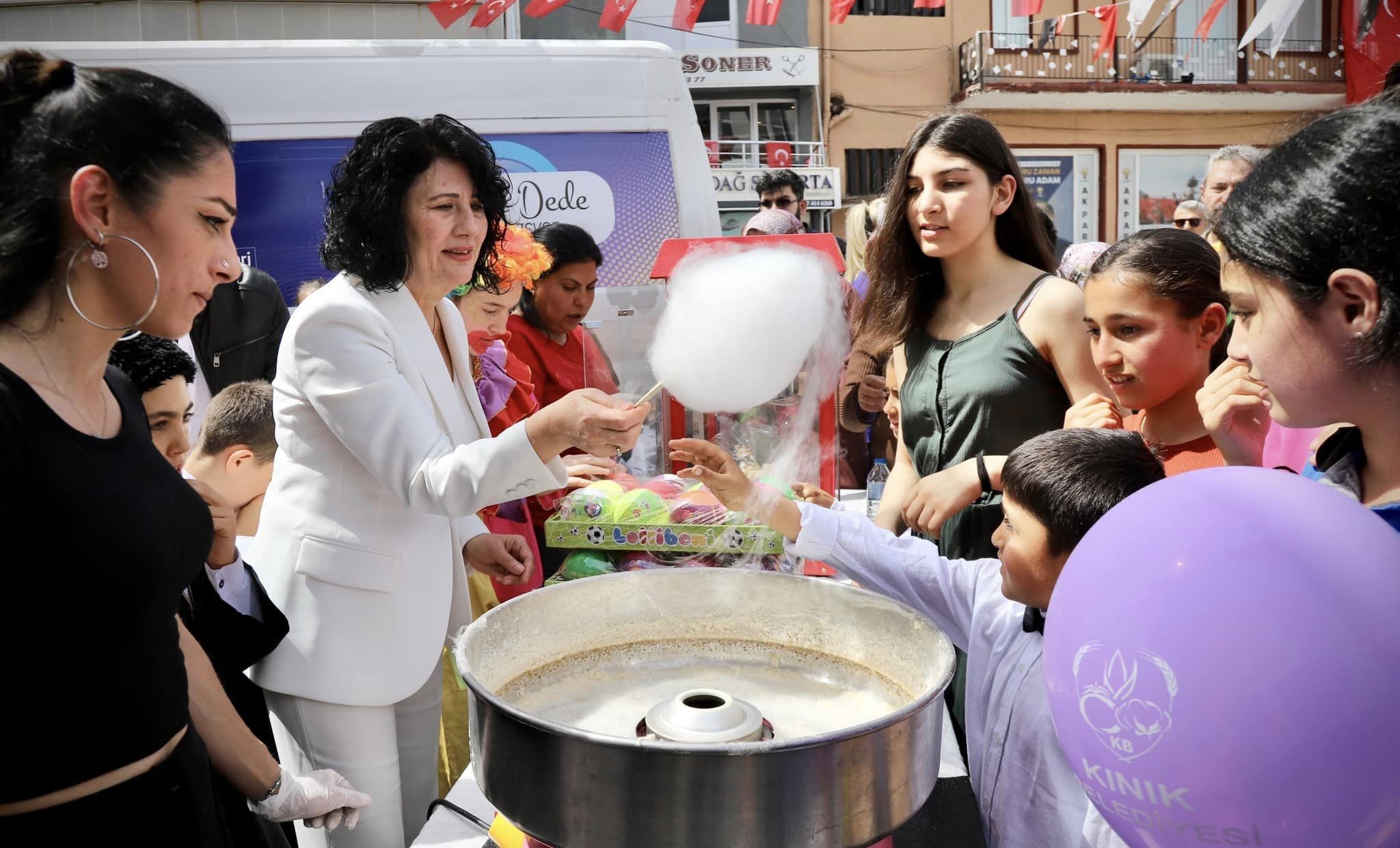 Kınık Belediyesinin 23 Nisan Ulusal Egemenlik ve Çocuk Bayramı nedeniyle oluşturduğu Çocuk şenlik alanının da çocuklar Şişme oyun parkı, pamuk helva, patlamış mısır ile bayramını kutladılar.
