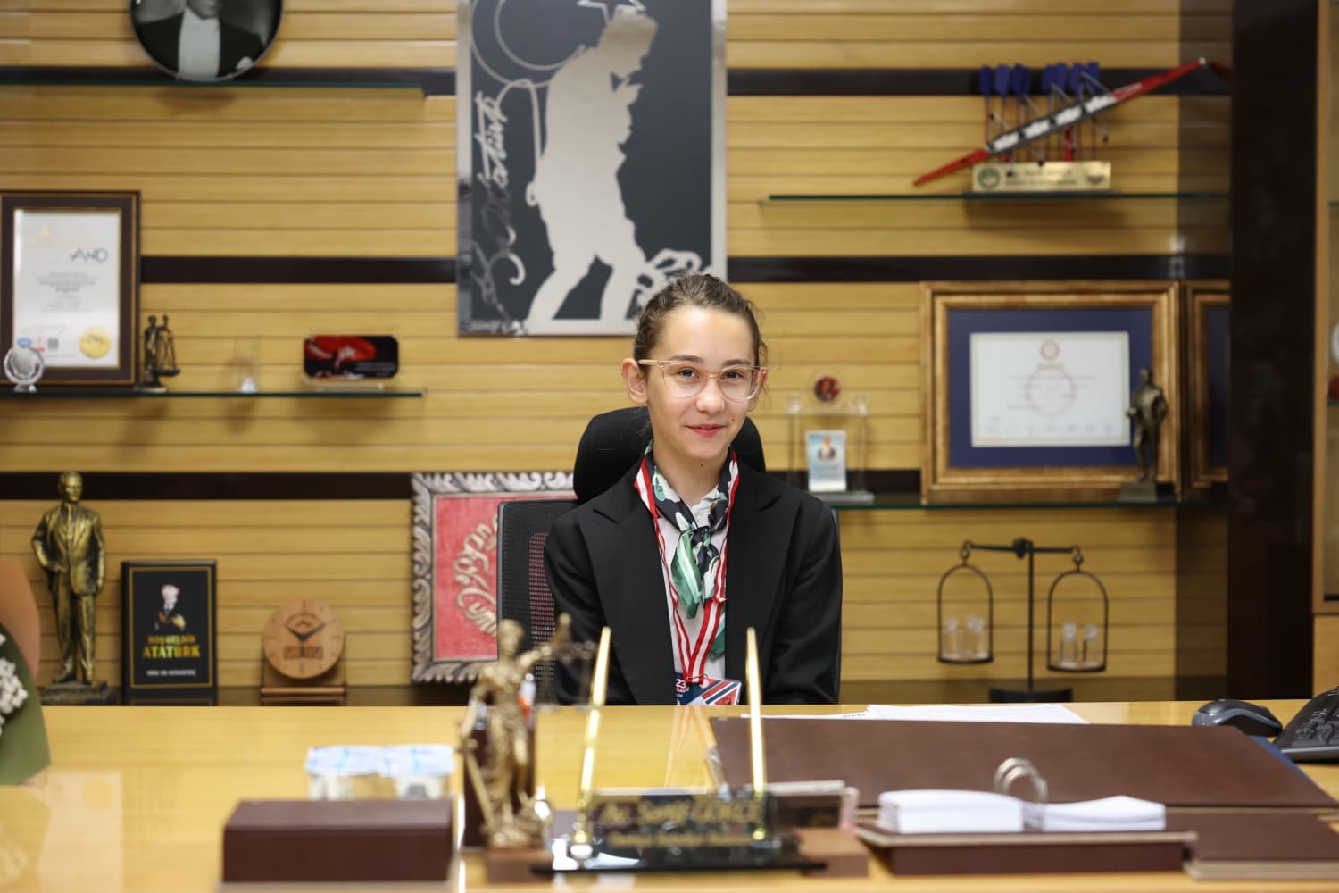 23 NİSAN 1-2-3-4-5-6: Derince Belediye Başkanı Av. Sertif Gökçe, 23 Nisan Ulusal Egemenlik ve Çocuk Bayramı dolayısıyla koltuğunu Yunus Emre İlkokulu öğrencisi Nisa Yağmur Can’a bıraktı.