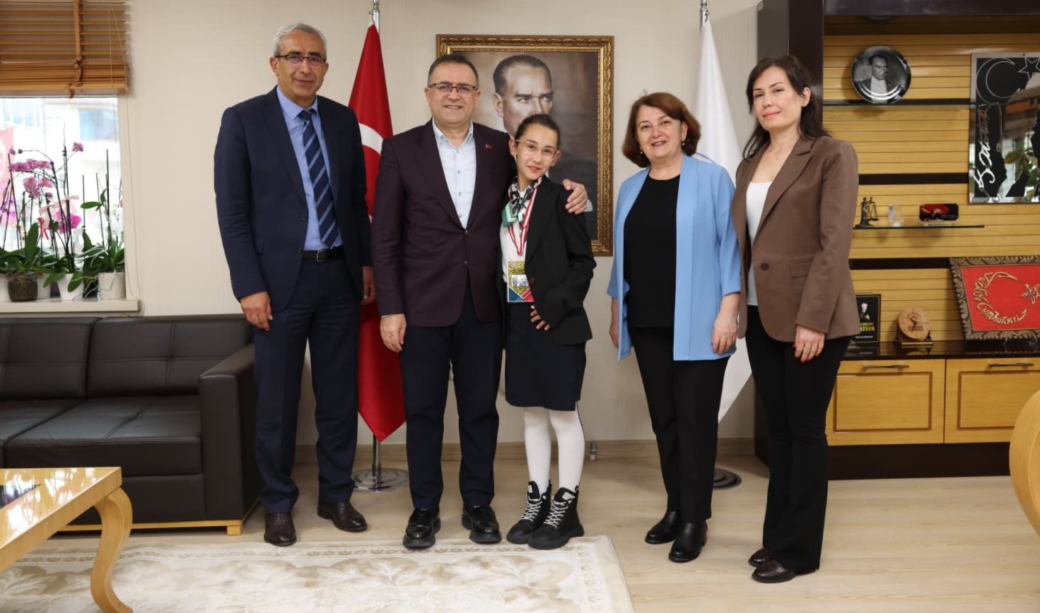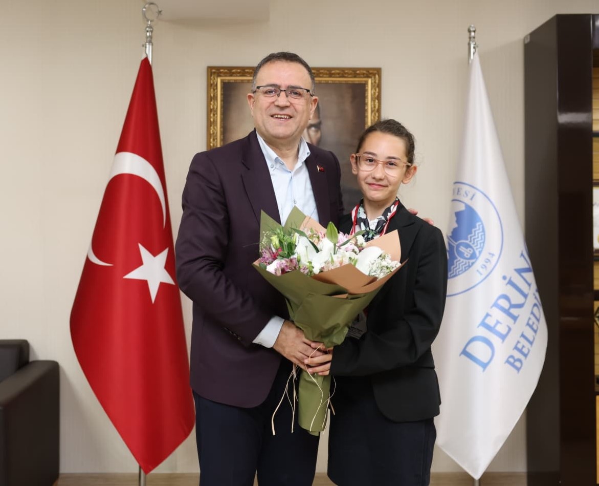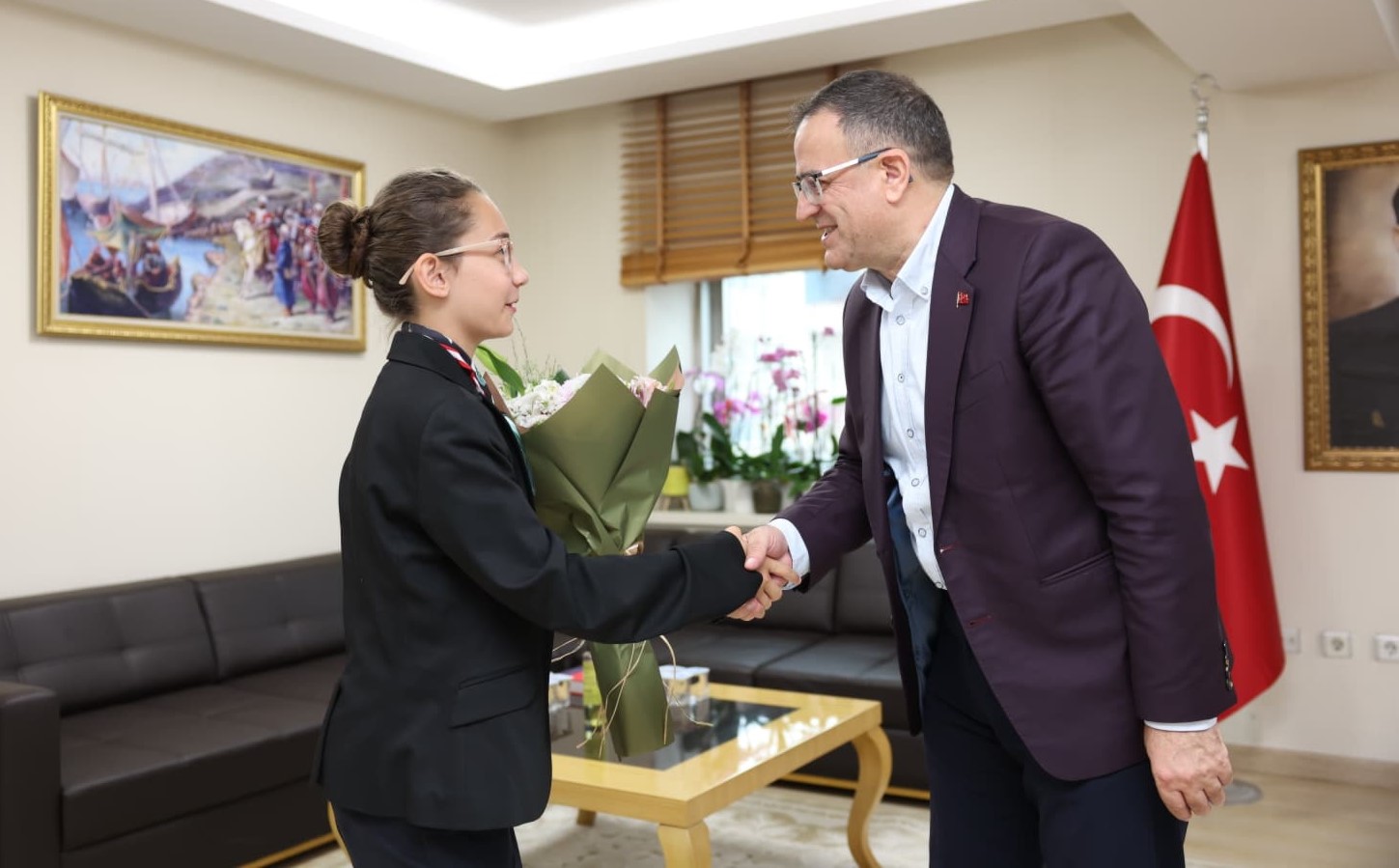 Cumhuriyetimizin Kurucusu Gazi Mustafa Kemal Atatürk’ün çocuklarımıza armağan ettiği 23 Nisan Ulusal Egemenlik ve Çocuk Bayramı, yurt genelinde olduğu gibi Kocaeli’de de çeşitli etkinliklerle kutlanıyor. Derince’de düzenlenen programlar kapsamında Başkan Gökçe, Yunus Emre İlkokulu 4/A Sınıfı öğrencisi Nisa Yağmur Can’ı başkanlık makamında misafir etti. Ziyarette Yunus Emre İlkokulu Müdürü Cantürk Şanal, sınıf öğretmeni Öznur Katılmış ve öğrencinin annesi Nuray Adıgüzel de hazır bulundu.