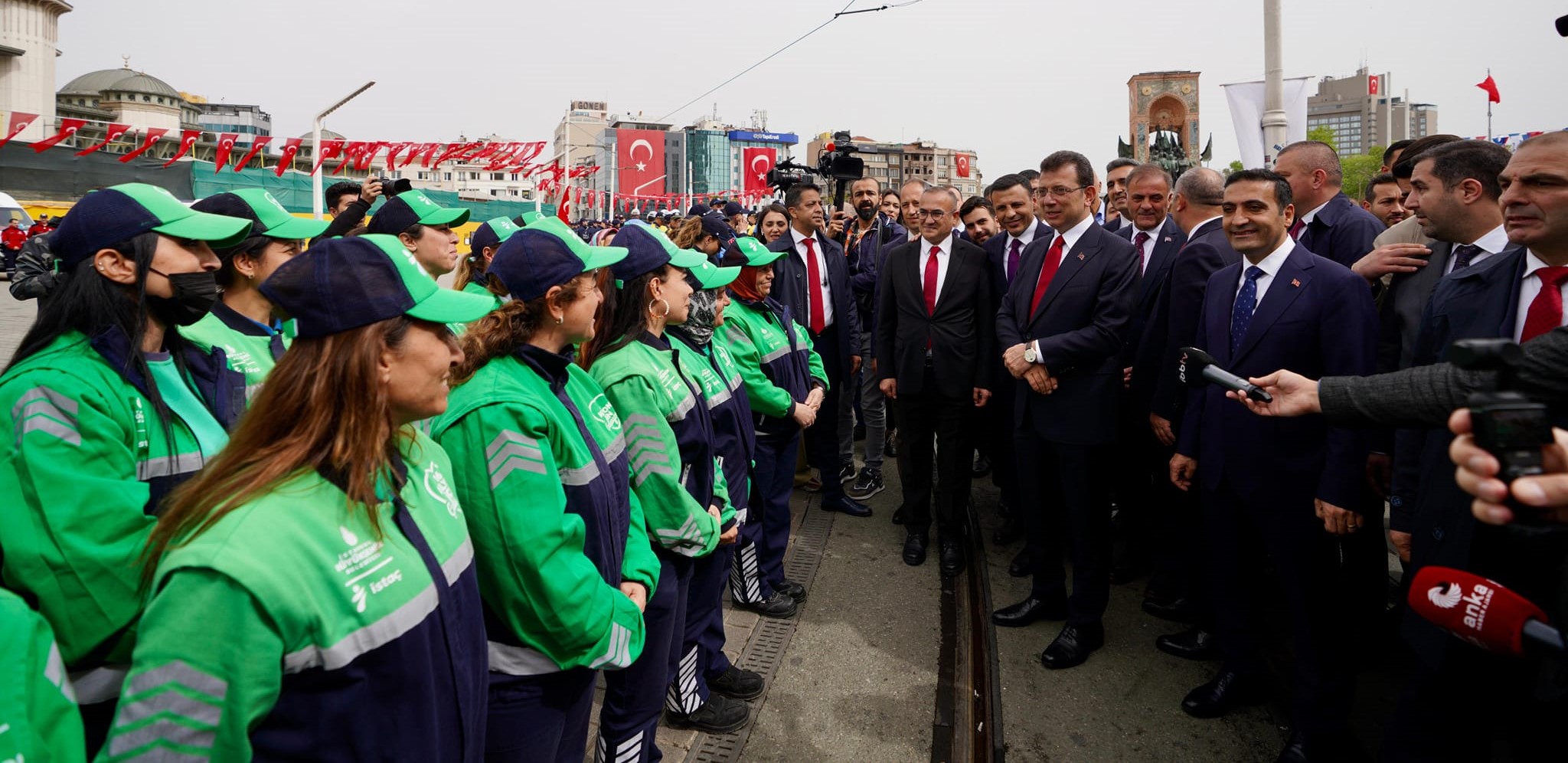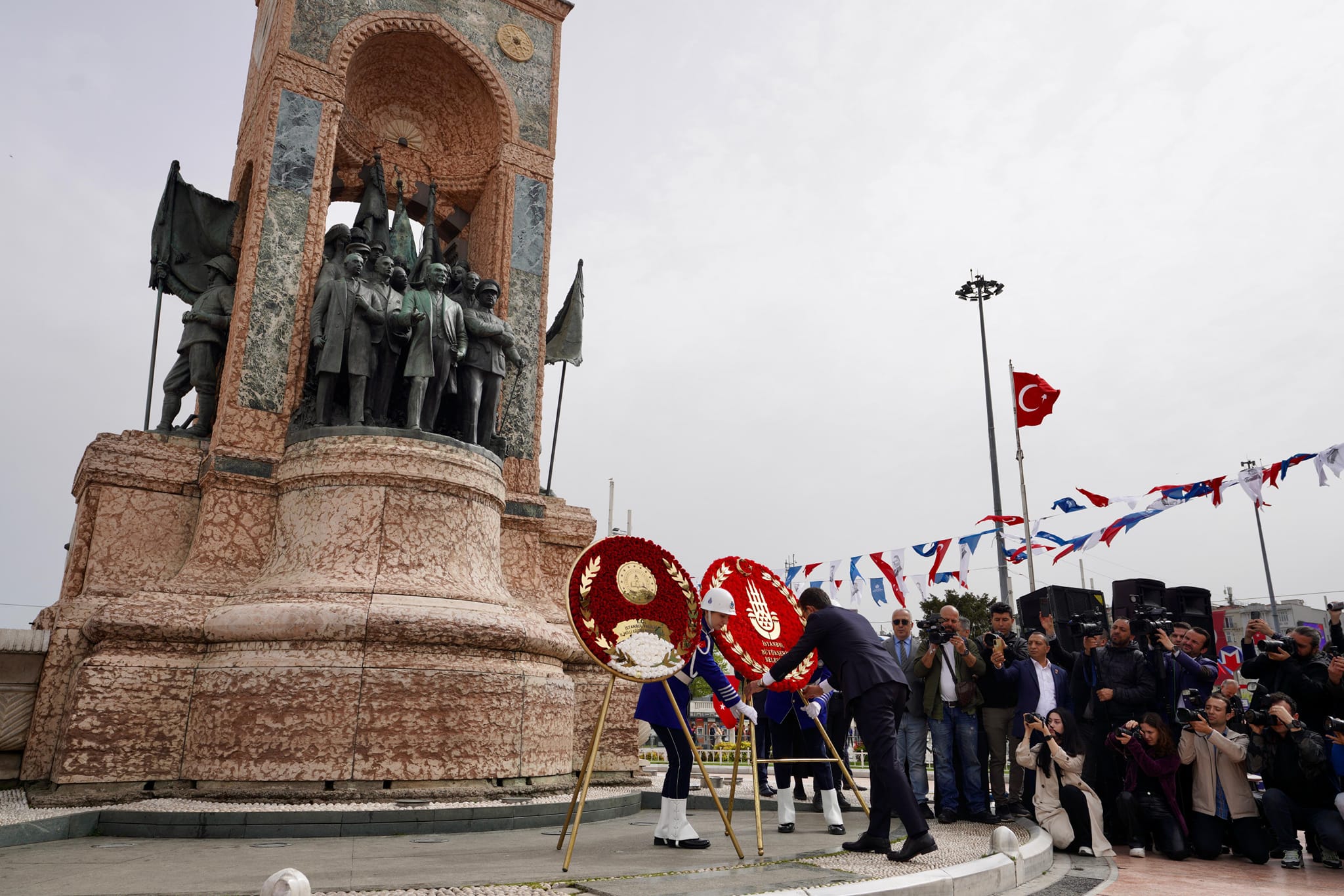 İstanbul Büyükşehir Belediye (İBB) Başkanı Ekrem İmamoğlu, CHP İstanbul İl Başkanı Özgür Çelik ve Beyoğlu Belediye Başkanı İnan Güney ile birlikte, 104’üncü 23 Nisan kutlamaları kapsamında Taksim Cumhuriyet Anıtı’nda düzenlenen resmi törene katıldı. İBB’nin düzenlediği “Uluslararası 23 Nisan Çocuk Festivali” kapsamında İstanbul’da ağırlanan, aralarında Filistin ve Ukrayna’dan gelen öğrencilerin de bulunduğu yabancı ülkelerden çocuklar da törene katılarak, 23 Nisan coşkusuna ortak oldu. Törenin resmi bölümü, İl Milli Eğitim Müdürü Doç. Dr. Murat Mücahit Yentür tarafından anıta çelenk konulması, saygı duruşunda bulunulması ve İstiklal Marşı’nın okunmasıyla son buldu. İmamoğlu, resmi törenin bitiminden sonra, zabıta mangası eşliğinde getirilen İBB çelengini Cumhuriyet Anıtı’na bıraktı. İmamoğlu’nun ardından siyasi parti ve sivil toplum kuruluşlarının çelenkleri de anıt çevresindeki yerini aldı.