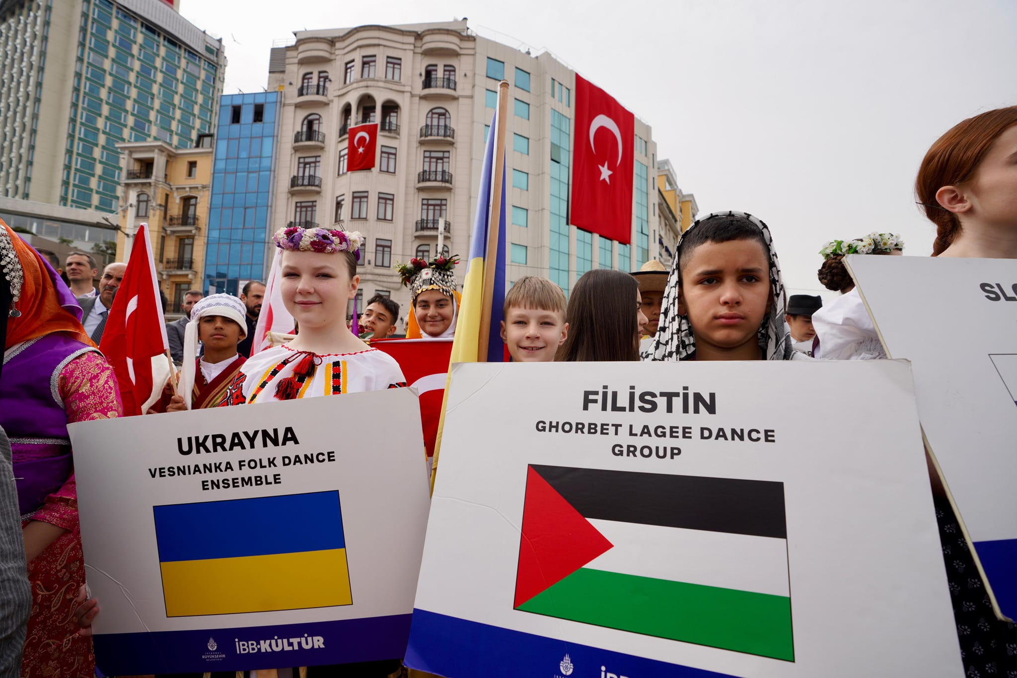 İBB Başkanı Ekrem İmamoğlu, 104’üncü 23 Nisan kutlamaları kapsamında Taksim Cumhuriyet Anıtı’nda düzenlenen resmi törene katıldı. Resmi törenin ardından anıta çelenk koyan, aralarında Filistin ve Ukrayna’nın da bulunduğu 15 farklı ülkeden gelen çocuklarla anı fotoğrafları çektiren İmamoğlu, gazetecilere yaptığı değerlendirmede, “23 Nisan, ‘milli egemenlik’ duygusuyla beraber, çocukların bayramı. Yani çocukların, aslında özgürlüğü. Bugün neyi haykırıyoruz? ‘Filistin’de çocuklar ölmesin’ diyoruz. Ya da başka savaş olan ülkelerde çocuklar savaşlarda katledilmesin, öldürülmesin istiyoruz. Aslında dünyada her çocuğun özgürlüğünü talep ediyoruz. Bir şehrin, bir ülkenin uygarlık seviyesi, çocuklarının ne kadar mutlu, huzurlu ve umutlu olduğuyla paraleldir. Biz umut ederiz ki, o çağdaşlık seviyesini bu milletin bütün evlatlarına yaşatan yöneticiler olalım” ifadelerini kullandı.