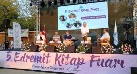 5. Edremit Kitap Fuarı’nda Öğretim Üyesi Prof. Dr. Abdullah Soykan, İş insanı Murat Bostancıoğlu, Yazar Fazıl Sayın, Tarihçi Sinan Kahyaoğlu ve Kültür ve Sosyal İşler Müdürü Cumhur Dokur, dünden bugüne Edremit’te tarih ve turizmini tüm detaylarıyla anlattı. Konuklara plaketleri Fuar Koordinatörü Necdet Saraç tarafından verildi.