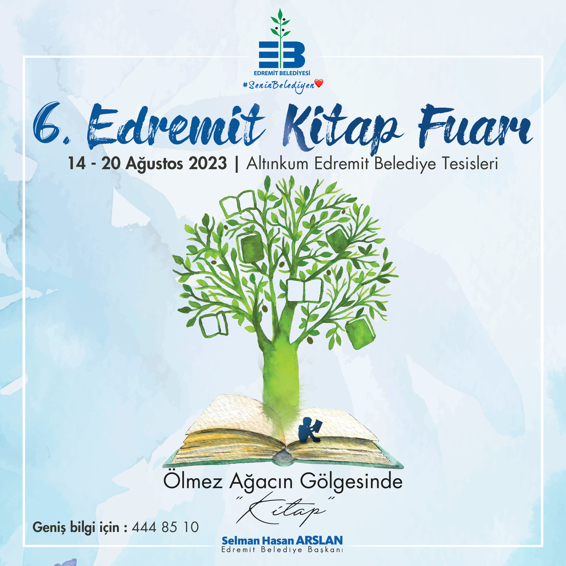 Her yıl olduğu gibi bu yıl da “Ölmez Ağacın Gölgesinde Kitap” sloganı ile yapılacak 6. Edremit Kitap Fuarı 14 Ağustos 2022 Pazartesi günü saat 19:00’da Edremit Altınkum Belediye Tesisleri’nde yapılacak açılış töreni ile başlayacak ve 7 gün sürecek. Yazar Ayşe Kulin’in onur konuğu olduğu fuara 300’e yakın konuk ve 60 yayınevi katılacak.