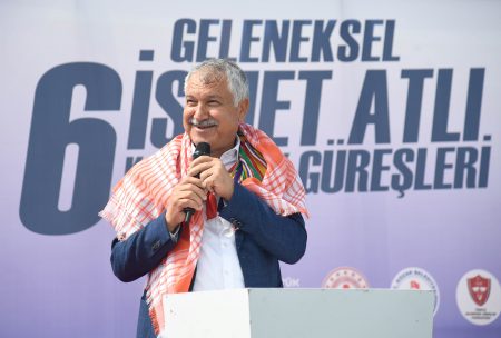 Başkan Zeydan Karalar, “20 binin üzerinde gence çok sayıda branşta spor eğitimi veriyoruz ama güreşin bizim toplumumuzun üzerinde çok özel bir yeri var. Dünyaya ‘Türk gibi kuvvetli’ dedirten ata sporumuzdur güreş. Şanlı bayrağımızı göndere çektiren bütün şampiyonlarımızı buradan saygıyla anıyorum. Merhum İsmet Atlı da efsane güreşçilerimizden biridir.