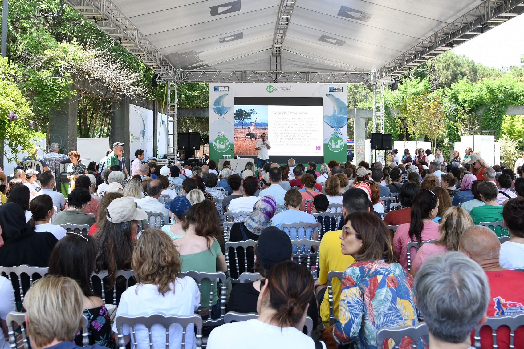 Türkiye’nin en kapsamlı ve en büyük çevre festivali Kadıköy’de devam ediyor. Selamiçeşme Özgürlük Parkı’nda gerçekleştirilen 6. Kadıköy Çevre Festivali’ne her yıl olduğu gibi bu yıl da doğaseverler yoğun ilgi gösteriyor. “Kentsel Dirençlilik: Doğaya Emek Ver” temasıyla düzenlenen festivalde; deprem ve iklim değişikliği kaynaklı doğal afetlerle mücadele konusunda atölyeler, paneller, söyleşiler, konserler, film gösterimleri ve tiyatrolar gibi birçok farklı etkinlik gerçekleştiriliyor. Hem çocuklar hem de yetişkinler için birbirinden renkli onlarca etkinliğe ev sahipliği yapan festivalin ikinci günü Kadıköy Afet Gönüllüleri için düzenlenen sertifika töreniyle başladı. Temel afet gönüllüsü eğitimlerini tamamlayan 60 kişi, sertifikalarını Kadıköy Belediye Başkanı Av. Şerdil Dara Odabaşı’nın elinden aldı.