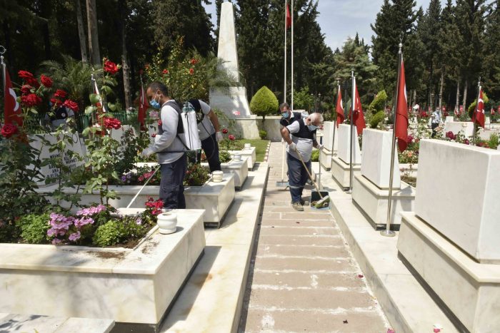 Bayramlarda vatandaşların yoğun olarak ziyaret ettiği mekanlar arasında yer alan mezarlıklar ve şehitlikler, Adana Büyükşehir Belediyesi Mezarlıklar Daire Başkanlığı ekiplerince ziyaretlere hazır hale getiriliyor. Mezarlıklarda kuruyan ot, diken ve atıklar temizlenip, ağaçların budaması gerçekleştiriliyor. Yürüme zorluğu çeken vatandaşların mezarlık ziyaretlerini kolay bir şekilde yapabilmeleri için de mezarlıklarda araçlarla servis hizmeti verilecek. Yapılan çalışmalarla vatandaşların kabristan ziyaretlerini temiz ve güvenli bir ortamda gerçekleştirmeleri sağlanıyor.