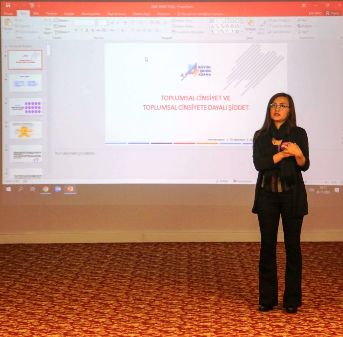 Adana Barosu Kadın Hakları Merkezi ile Adana Büyükşehir Belediyesi Kadın ve Aile Hizmetleri Daire Başkanlığı birlikteliğiyle Kadına Yönelik Şiddetin Önlenmesi konusunda hizmet içi eğitim çalışması gerçekleştirildi.