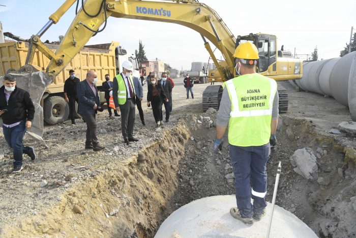 Ray Sokak’ta süren yol yapım ve yağmur suyu tahliye hattı döşenmesi çalışmalarını da inceleyen Başkan Zeydan Karalar, “Adana’nın çeşitli noktalarında trafiği rahatlatmak için, alternatif yollar üzerinde çalışıyoruz. Eski adıyla Ray Sokak’ta, Mustafa Kemal Paşa Bulvarı’nın devamında çalışmalarımız sürüyor. Niyetimiz Mustafa Kemal Paşa Bulvarı’nı, Otogarın arkasına kadar uzatarak D-400’e paralel bir yol yapmak.