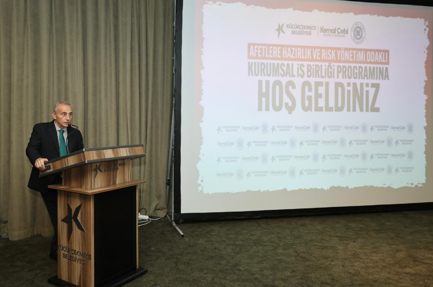 Küçükçekmece Belediyesi’ni afetlere karşı sadece müdahale eden değil; hazırlayan, yönlendiren ve toplumu dönüştüren bir yapıya taşıyacak olan protokolün imzalandığı programa; Küçükçekmece Belediye Başkanı Kemal Çebi’nin yanı sıra, başkan yardımcıları, meclis üyeleri, birim müdürleri, İstanbul Aydın Üniversitesi rektörü ve akademisyenleri, sivil toplum kuruluşları üyeleri ve muhtarlar katıldı. Programda Küçükçekmece Belediye Başkan Yardımcısı Gökhan Aygün, Afetlere Hazırlık ve Risk Yönetimi Odaklı Kurumsal İş Birliği Protokolü’nün sunumunu gerçekleştirdi.