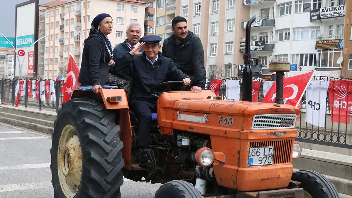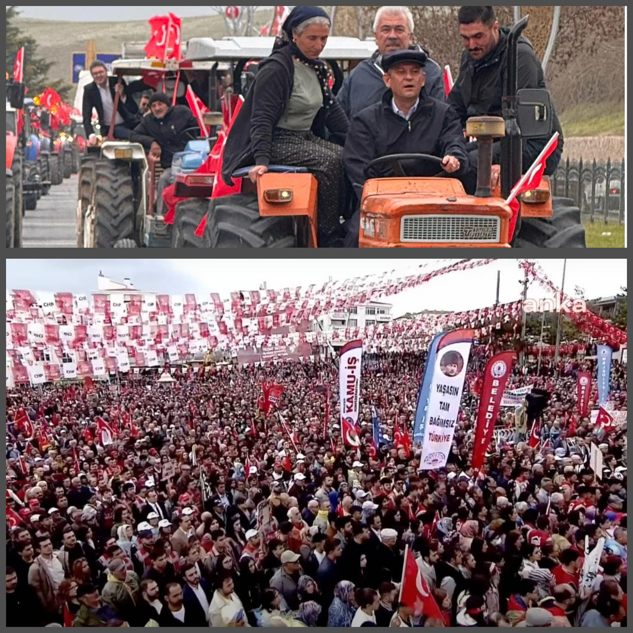 Cumhurbaşkanı Erdoğan’ın yüzde 76 oy aldığı Yozgat’ta binlerce çiftçi 6 kilometrelik traktör kuyruğu oluşturdu. İmamoğlu’nun tutuklanmasını traktörleriyle protesto eden 10 Yozgatlı çiftçiye iktidar 1 milyon lira ceza kesmişti. CHP lideri Özgür Özel Cumhuriyet Meydanı’na kafasında kasketle, kendi kullandığı traktörle girdi.