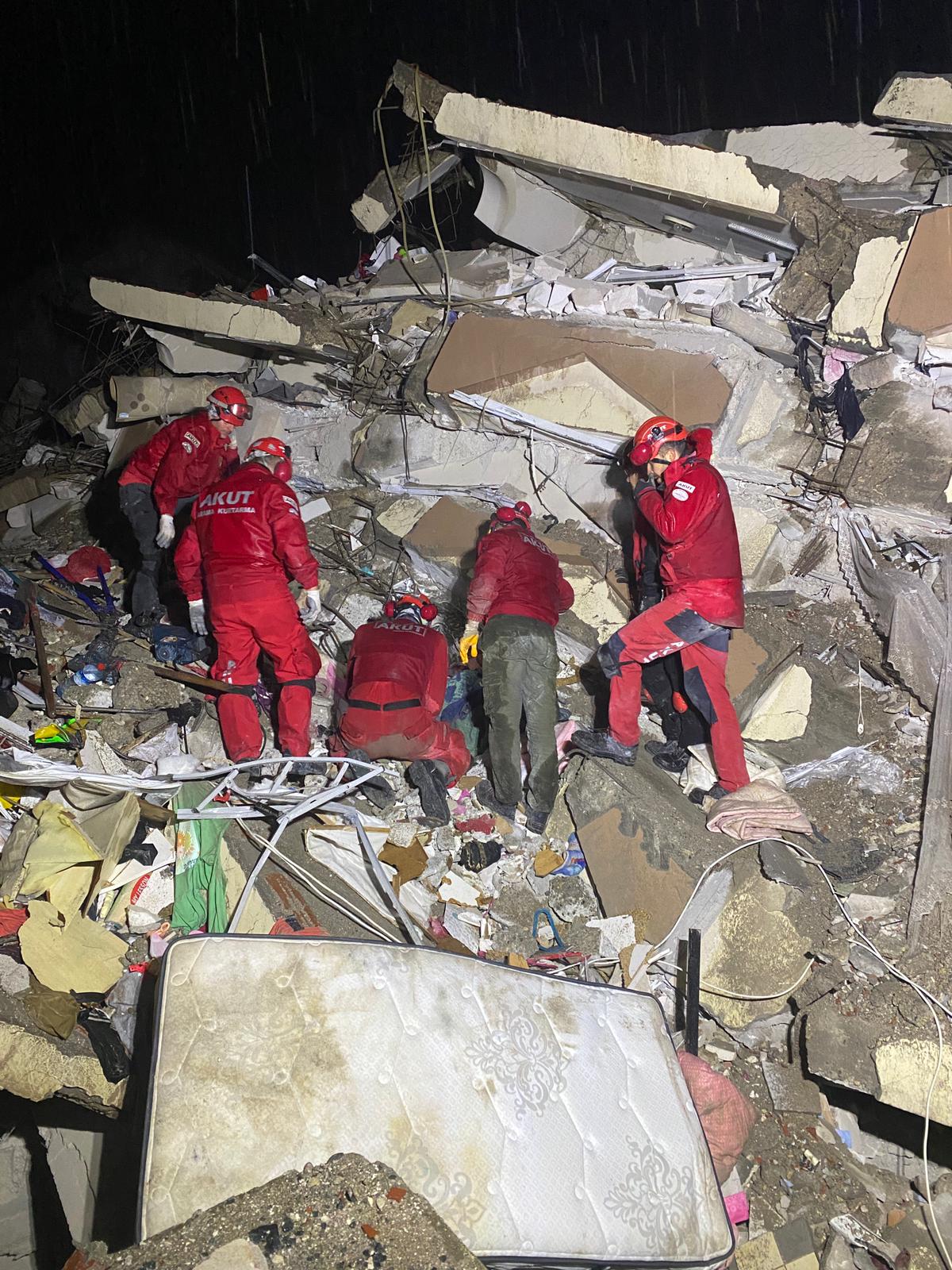 Depremin ilk anından itibaren hızla koordine olan AKUT ekipleri, 7 Şubat 2023 saat 09.00 itibari ile deprem bölgesinde 28 ekip ve 641 gönüllüsü ile operasyonlarını sürdürüyor. Dernekten yapılan açıklamada, 4 arama köpeğiyle desteklenen çalışmalarda 64 kişinin enkazdan tahliye edildiği belirtildi.