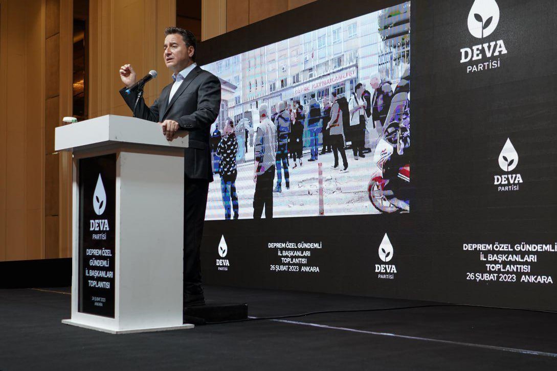 DEVA Partisi Genel Başkanı Ali Babacan, partisinin deprem özel gündemiyle toplanan il başkanları toplantısında, Kahramanmaraş depremine dair 2021’de yaptığı uyarıları izletti. “Tüm Beştepe’ye sesleniyorum. Herkes ilk 48 saatte ne yaptığını anlatsın” diyen Babacan, “Seçimden sonra kayıtları açacağız. Şahit olan herkesi çağırıp depremin ilk 48 saatini saniye saniye çözeceğiz” ifadelerini kullandı. Babacan, çadır dağıtım kuyruklarına da sert tepki gösterdi.