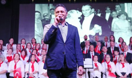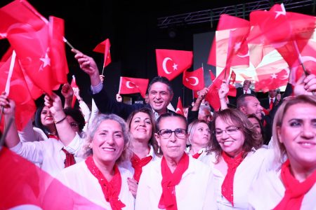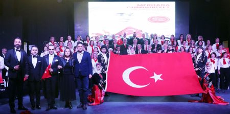 ‘Merhaba Cumhuriyet’ konseri Başkan Serkan Acar’ın koro üyeleri birlikte seslendirdiği ‘Memleketim’ ve ‘10.Yıl Marşı’ ile son buldu.