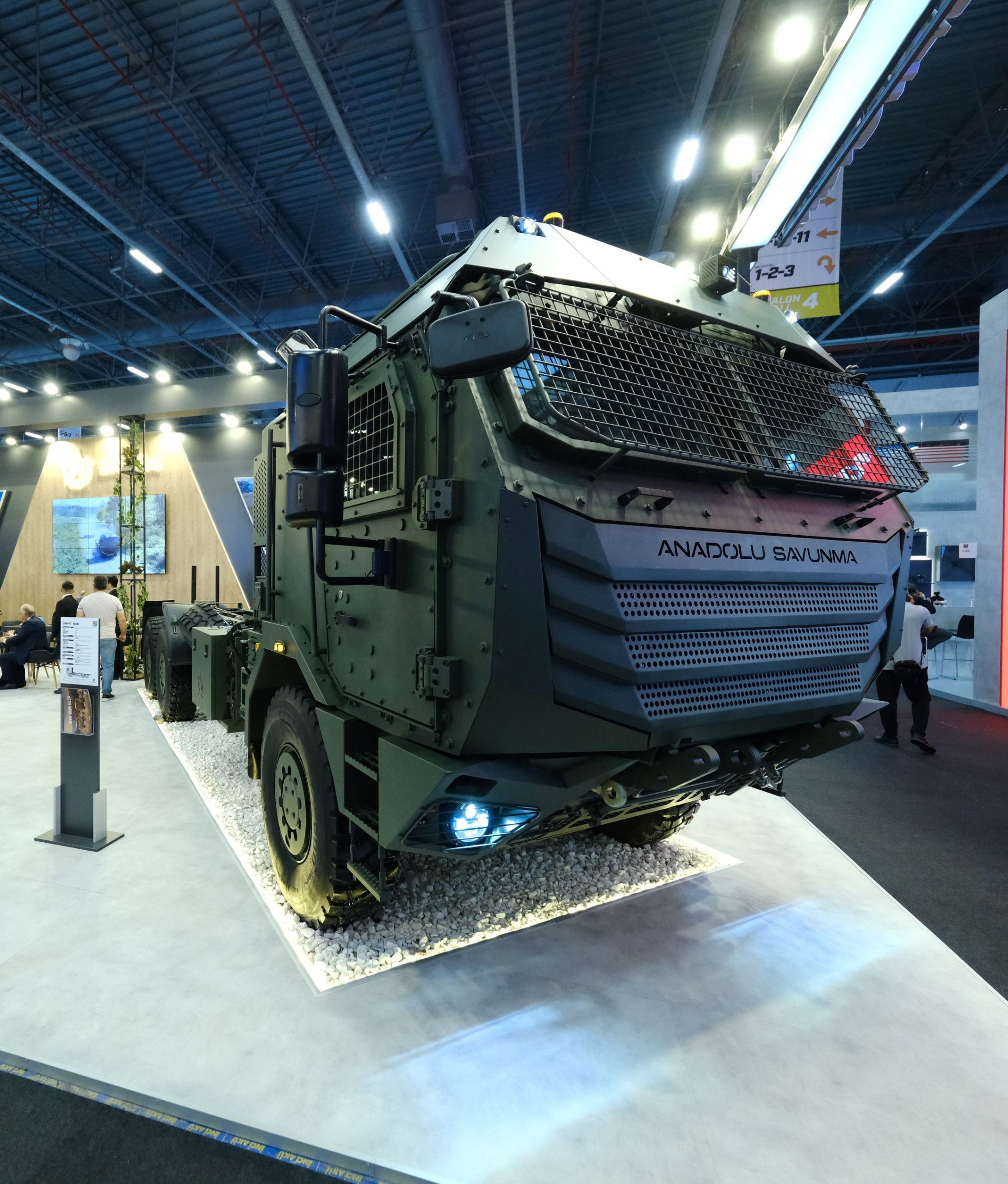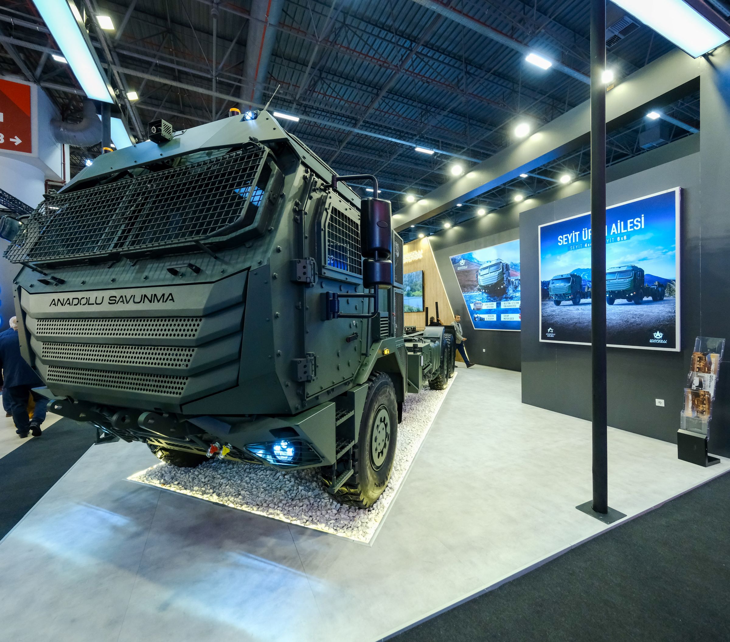 Anadolu Savunma’nın fuarda tanıttığı zırhlı SEYİT 6×6 taktik tekerlekli aracı; modüler, güvenilir ve teknolojik bir görev çözümü olarak geliştirildi. Tamamen yerli ve millî imkânlarla tasarlanıp geliştirilen ve %60 dik eğim tırmanma, %30 yan eğimde dengeli sürüş, 1 metre derin sudan hazırlıksız geçiş, yüksek taşıma kapasitesi ve üstün arazi yetenekleriyle SEYİT 6×6, modern muharebe sahasının ihtiyaç duyduğu kritik fonksiyonları ve üstün performans özelliklerini tek bir platformda bir araya getiriyor. SEYİT ürün ailesi rijit akslı zırhlı 6×6 haricinde rijit akslı zırhsız 6×6, zırhlı ve zırhsız rijit akslı 4×4 versiyonu ve zırhsız bağımsız süspansiyonlu 4×4 versiyonundan oluşuyor. En yüksek ağırlıkları NATO standartlarındaki performans gereksinimlerinden ödün vermeksizin taşıyabilen ve –32’den +55°C’ye kadar sıcaklıklarda dahi görevini eksiksiz yerine getirebilen SEYİT ürün ailesinin modüler tasarımı; aracı hava savunma, komuta kontrol, silah sistemleri veya sistem taşıyıcı gibi çok çeşitli lojistik görevler için uyarlanabilir kılıyor. Entegre sistemleri, yüksek performansı, kolay idamesi, güçlü motor seçenekleri ve görev esnekliğiyle sahada üstün bir çözüm olarak öne çıkan SEYİT, hem yüksek yük taşıma kapasitesi hem de zorlu arazi performansıyla taktik görevlerde de yüksek performans gösteriyor. Hava, deniz, kara ve demiryoluyla kolaylıkla nakledilebilen model, birliklerin hızlı konuşlanmasına önemli bir katkı sağlıyor. Modelin açık mimari alt yapısı sayesinde teknolojik sistemler zaman içinde kolayca entegre edilebiliyor.