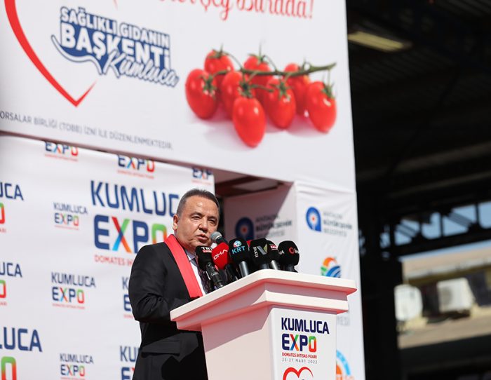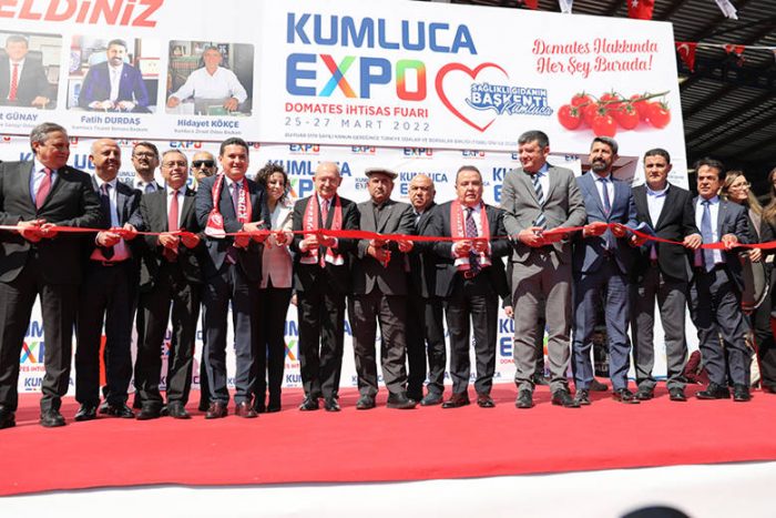 Türkiye’de domates konusunda düzenlenen tek ihtisas fuarı olan Kumluca Expo’da tarımdaki girdi maliyetleri nedeniyle üreticinin yaşadığı zorluklar damga vurdu. Başkan Muhittin Böcek, yerelden kalkınma hamlesiyle Antalya Büyükşehir Belediyesi’nin üretimin her aşamasında çiftçinin yanında yer almaya gayret gösterdiğini söyledi. Antalya Büyükşehir Belediyesi, Kumluca Belediyesi, Kumluca Ziraat Odası, Kumluca Ticaret Odası ve Kumluca Ticaret Borsası işbirliğiyle düzenlenen Kumluca Expo Domates İhtisas Fuarı Kumluca Toptancı Hali’nde başladı. Fuarın açılışına CHP Genel Başkanı Kemal Kılıçdaroğlu, CHP Genel Başkan Yardımcıları, CHP Antalya Milletvekilleri, İYİ Parti Antalya Milletvekili Hasan Subaşı, Antalya Büyükşehir Belediye Başkanı Muhittin Böcek, İlçe Belediye Başkanları, Meclis üyeleri, sivil toplum kuruluşlarının temsilcileri, muhtarlar ve vatandaşlar katıldı.
