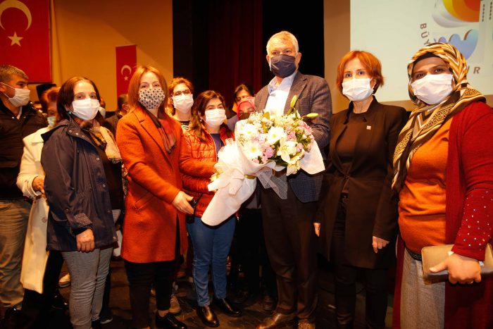 Başkan Zeydan Karalar’ın konuşmasının ardından apartman görevlileri söz aldı. Hem mesleki, hem de vatandaş olarak sorun ve isteklerini anlatan apartman görevlilerini dinleyen Başkan Zeydan Karalar, titizlikle ve bizzat not aldı, belediyeyi ilgilendiren problemlerin çözümü için gerekli girişimlerin yapılacağını aktardı.