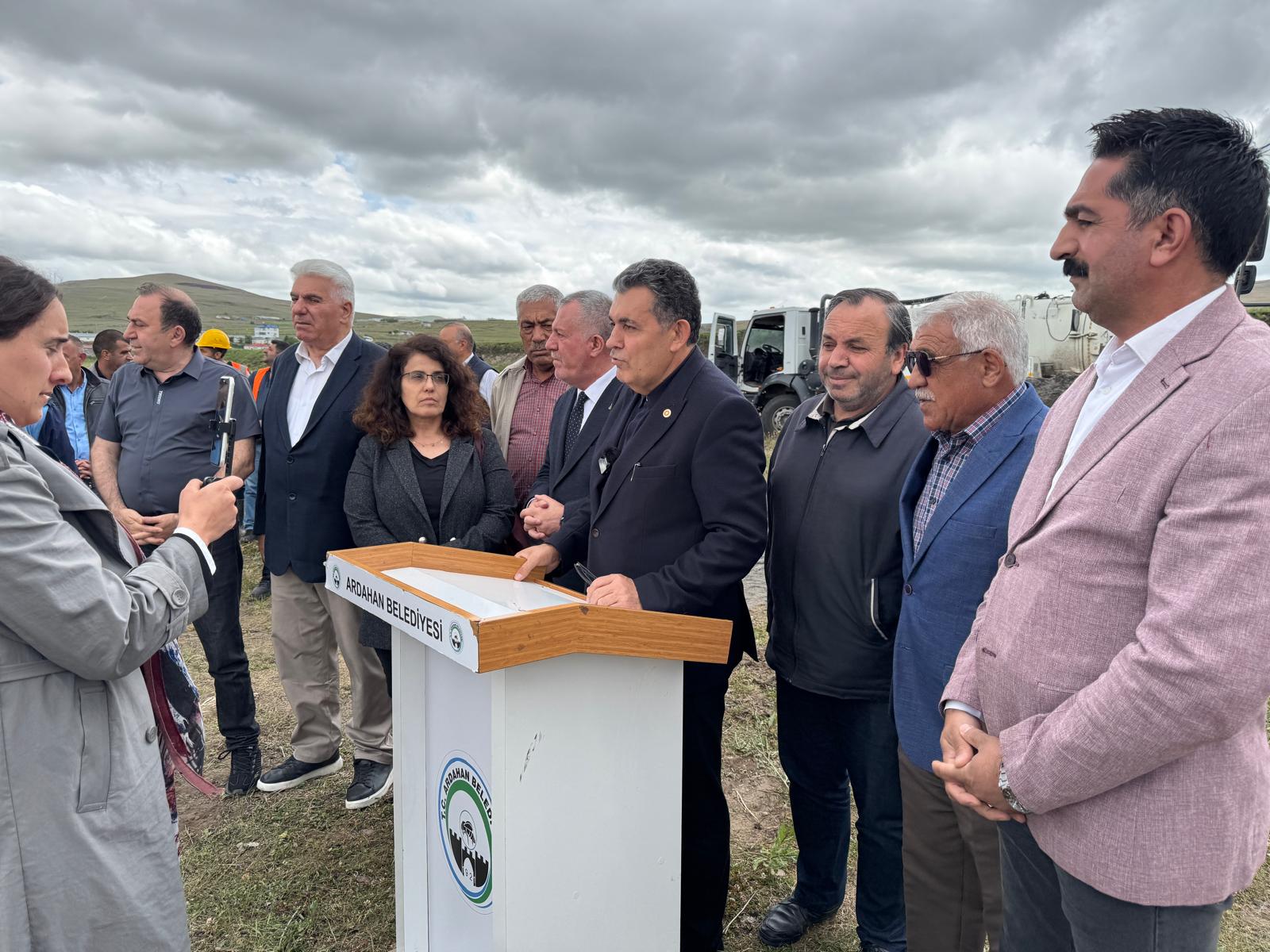 “Ardahan’ımızın önemli bir eksikliğini gidermek için bugün yine bir temel atma törenimiz oluyor. Yıllardır apartman altlarında hoş da olmayan bir şekilde esnaflık yapan galericilerimizin bu derdine artık son veriyoruz. Alt yapı çalışmalarına başladığımız Galericiler sitesi için temelimiz de atıyoruz. İlimize ve hemşehrilerimize hayırlı uğurlu olsun.”