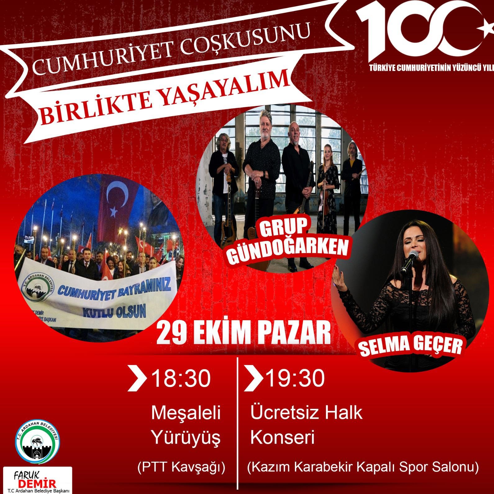 Başkan Demir, Cumhuriyetin şehrimizde unutulmayacak bir coşku ile geçmesi için belediye olarak tüm halkımıza bayrak dağıttıklarını söyledi. Başkan Demir ayrıca 100 yıllık maziye sahip Cumhuriyetin ebediyete kadar yaşayacağını dile getirerek,  “Cumhuriyetimizin kurucusu Gazi Mustafa Kemal Atatürk ve silah arkadaşları başta olmak üzere tüm şehitlerimizi ve gazilerimizi minnetle anıyorum” dedi.