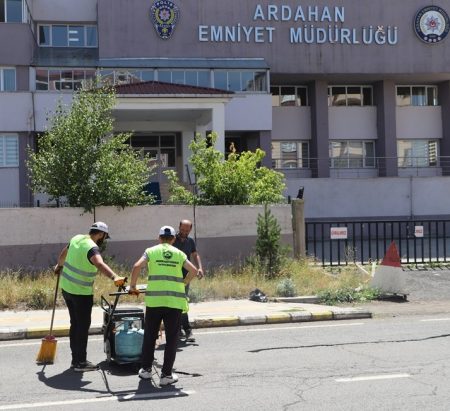 Ardahan’da şehir içi asfalt yollarda oluşan bozulmaları ortadan kaldırmak için belediye ekiplerince başlatılan sıcak asfalt yama çalışmaları tüm hızıyla sürüyor.