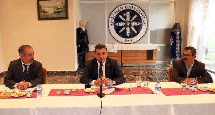 Rektörümüz: “Temel amaçlarımızdan birisi de Ardahan Üniversitesini tarım ve hayvancılık alanında Türkiye’nin AR-GE Merkezi yapmaktır. Bu amaçla, gelişmiş bir üniversitenin Teknokentiyle görüşmelerimiz devam ediyor. Tarım ve Hayvancılık Bilimleri Enstitüsünün kurulmasını takiben önemli adımlar atacağız. Bu adımlar; merkezde Hayvan Hastanesi, Posof’ta Arıcılık Ürünleri ve Ana Arı Yetiştirme Merkezi, Göle’de Büyükbaş Hayvan Yetiştirme ve Irk Islahı Merkezinin kurulması şeklindedir. Ayrıca Çıldır’da Su Sporları ve Dalış Eğitimi Merkezini de kuracağız” dedi.