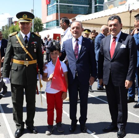 Ardından Kongre Caddesine geçen Vali Hüseyin Öner ve Başkanımız Demir, askerlerin ve vatandaşların bayramını kutladı.