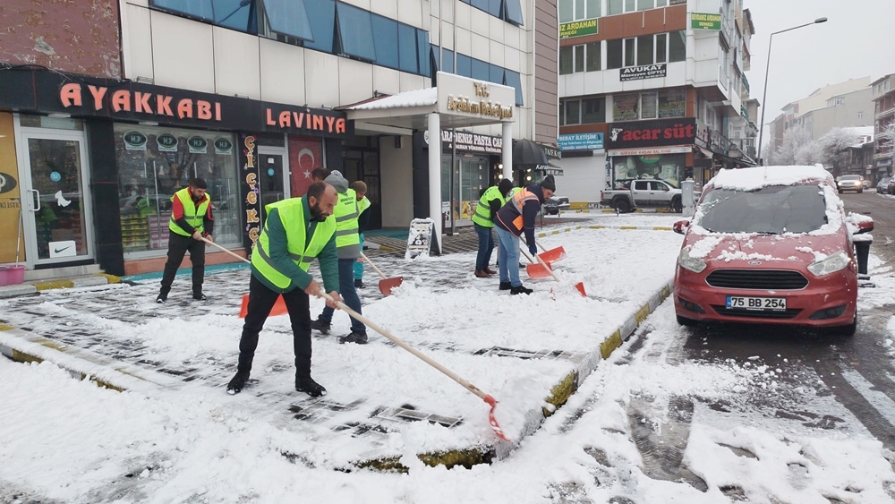Ardahan’da dün akşam saatlerinde etkili olan kar yağışı sonrası kent beyaza büründü. Ardahan Belediyesi Temizlik İşleri Müdürlüğüne bağlı ekipler sabahın erken saatlerinden itibaren işe koyularak kaldırımlardaki karları küredi.