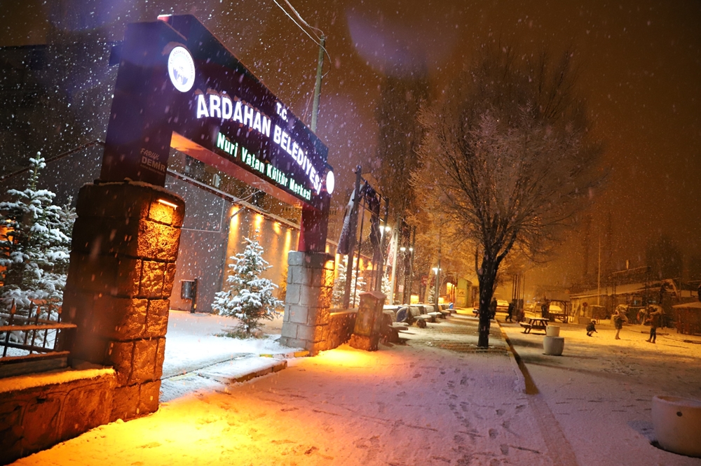 Uzun süredir güneşli ve sıcak havanın hâkim olduğu Ardahan’da Aralık ayının ilk gününde akşam saatlerinde kar yağışı etkili oldu. Beyaz gelinliğini giyen şehirde, belediye ekipleri günlük hayatın olumsuz etkilenmemesi için sabahın erken saatlerinde kaldırımlarda kür küreme çalışması gerçekleştirdi.