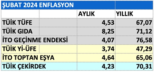 Zaten, Maliyet artışını gösteren yıllık Yİ-ÜFE de, şubat ayında 47,29 oldu ve yine yüzde 67,07 olan TÜFE’nin altında kaldı.