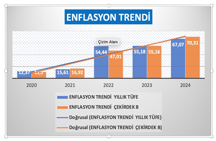 Çekirdek enflasyon, enflasyon direncini ve enflasyon trendini daha net gösterir. Yıllık çekirdek enflasyon; Yıllık TÜFE’ den daha yüksek yüzde 70,31 oldu. Bu demektir ki, enflasyon direniyor ve artacaktır.
