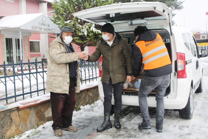 Sahadaki belediye emekçilerini ziyaret eden Atakum Belediye Başkan Vekili Hasan İpek, Başkan Yardımcısı Okan Saral ile Başkan Danışmanı Muzaffer Yıldız ardından Mimarsinan Mahallesi’nde bulunan pazaryerinde esnafla bir araya geldi. Çorba dağıtım noktalarından birisi olan Mimarsinan Mahallesi pazaryerinde yurttaşlarla da sohbet eden Başkan Vekili İpek, Atakum’un dört bir yanında karla mücadele çalışmalarının devam ettiğini söyleyerek, “Nihayet beklediğimiz kar, Atakum’a düştü. Çocuklarda başta olmak üzere insanlarda bir heyecan var. Yalnız karın beraberinde getirdiği sıkıntılar da var. Biz bunları aşmak için Atakum Belediyesi olarak, Atakum’u dört parçaya ayırdık. Ekiplerimizi görevlendirdik. Şu anda 21’i iş makinesi olmak üzere toplam 36 aracımız, 150 personelimiz sahada çalışmaya devam ediyor. Ayrıca WhatsApp ihbar hattı kurduk. Vatandaşlarımız 0532 963 02 06 numaralı ihbar hattından bizi arayarak, tüm sorunlarını iletebilir. Ayrıca vatandaşlarımızın yoğun olduğu bölgelerde, özellikle pazaryerinde, tramvay duraklarında belli noktalarda sıcak çorba dağıtım noktaları oluşturduk. Bu noktalarda çorba ikramı yapıyoruz. Bizim Atakum halkından isteğimiz ise mümkün olduğunca sokağa çıkmamaları, evlerinde karın tadını çıkarmaları ve çocuklarıyla vakit geçirmeleri” diye konuştu.