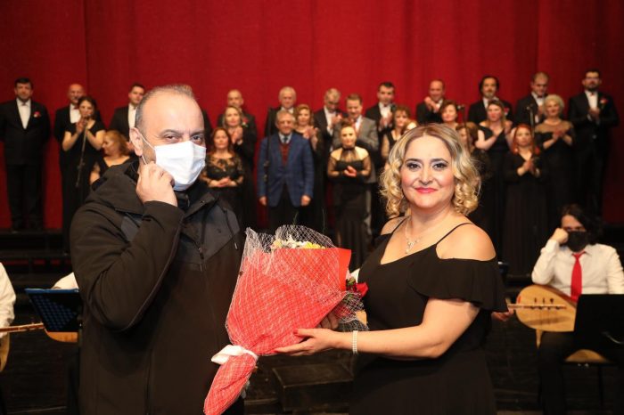 Atakum Belediye Başkanı Av. Cemil Deveci de konserin son şarkısı olan “Bahçaya Gel Göreyim” eserinde sahneye çıkarak koroya eşlik etti.