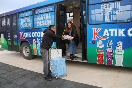 Çevre alanında gerçekleştirdiği önemli projelere bir yenisini daha ekleyen Atakum Belediyesi İklim Değişikliği ve Sıfır Atık Müdürlüğü’nün “Katık Otobüsü” faaliyete başladı. Karton, pet, cam, metal, atık yağ gibi geri dönüştürülebilir atıkları kilo bazında kabul ederek ücretini ödeyecek otobüs, haftanın her günü farklı bir noktada atık toplayacak. “Atığınız katık olsun sofranıza katkı olsun” sloganıyla yola çıkan Katık Otobüsü ile kentte farkındalık yaratmayı hedeflediklerini söyleyen Atakum Belediye Başkanı Av. Cemil Deveci, “Geri dönüşebilecek atıkları getirdiklerinde karşılıkları olan ücreti ödeyerek Atakumluları teşvik etmeye çalışıyoruz” diye konuştu.