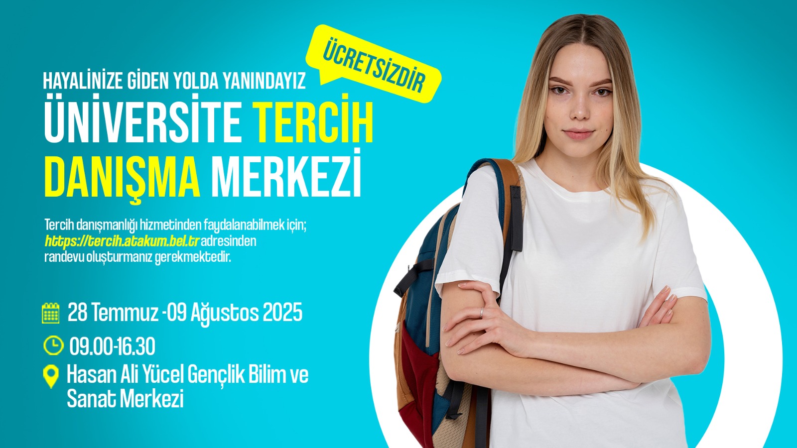 Atakum Belediyesi, YKS’ye giren gençlerin üniversite hayalini gerçekleştirmek için tercih danışma hizmeti sunuyor. Üniversiteli adayları, Hasan Ali Yücel Gençlik Bilim ve Sanat Merkezinde verilen hizmetten, 8 Ağustos Cuma gününe kadar 09.00-16.30 saatleri arasında yararlanabilir.