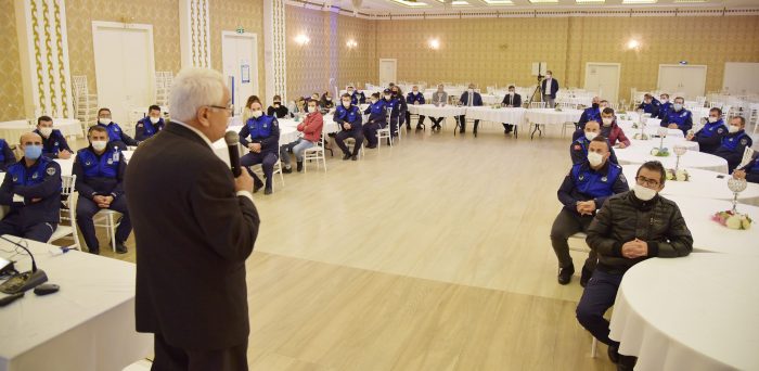 Zabıtaların günün her saatinde yurttaşlarla iç içe olan ekipler olduğunu ifade eden Prof. Dr. Kurtman Ersanlı, “Pazar yerlerinde, sokaklarda, iş yerlerinde, parklarda insanlarla iletişim içerisindesiniz. İnsanın insanla en yoğun iletişim kurduğu yer de belediyeler. Dolayısıyla bu iş öyle rastgele yapılacak bir iş değil. Sizler halkla nasıl ilişki kuracağınızı bilmek durumundasınız. Eğitimden birkaç gün önce sayın Atakum Belediye Başkanımız Av. Cemil Deveci’nin bir ifadesine rastladım. ‘Atakum Belediyesi gönüllerin buluştuğu, başarıya dönüştüğü yer’ dedi. Bir kurumun önce hedefi, hedefini de ifade eden bir dili olması lazım. Başkanımız da o ifadede kurumun hem hedefini ortaya koymuş hem de dili çok başarılı şekilde oluşturmuş. Yapacağımız eğitimlerle sadece belediye çalışanlarını değil, hizmet götürdüğümüz insanların da gönüllerini buluşturabiliyorsak gönlümüz rahat olur. Yastığa başımızı rahat koyabiliriz. Belediye bir ülkede bulunan tüm makamların işlerini yürüten bir kurum. Bir işyeri idare etmek gibi değil. Sağlık, kültür, çevre, güvenlik gibi aklınıza ne geliyorsa birçok alanda görevleri var. Bu kadar dünyası farklı olan bir kurumun doğru idare edilmesi ve oradan arzu edilen hizmetin alınması kolay değil” diye konuştu.