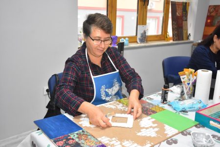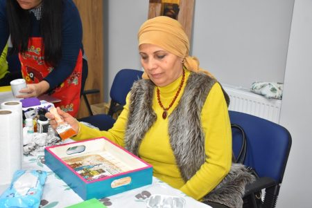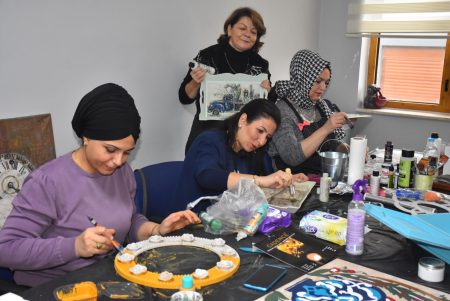 Kurs eğitmeni Behiye Burdurlu’nun öğreticiliğinde, ev hanımlarının çoğunlukta olduğu el sanatları kursu Atatürk Gençlik Merkezi’ndeki modern çalışma alanında yeni eserler çıkarmaya başladı. 14 kursiyerin yer aldığı el sanatları kursunda artık katılımcılar daha geniş alanlarda sergi imkanı bulabilecek. Ayda bir kez düzenlenecek workshop çalışmaları ile katılımcılar daha etkin rol alacak. Duvar çalışmaları, ahşap boyama, seramik boyama, cam boyama ve ahşap üzerine çini desenli işleme çalışmaları ile el emeği göz nuru eserler tamamlandıktan sonra sergilenecek.