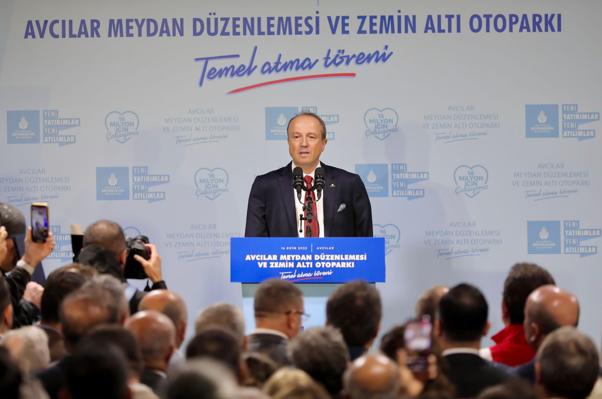 Bu proje 20- 30 yıldır yapılmayı bekleyen bir proje. Herkes bilir burada Turgut Özal Stadyumu vardı ve bu stadyumun yıkılması ile birlikte yeri Avcılar halkından alınarak Büyükşehir kullanmaya başladı. Ekrem başkanımızın kazanması ile birlikte işte burası yine Avcılar halkına tekrardan geri dönüyor. Bu dönüş Avcılar’ın en önemli sorunlarından biri olan otopark sorununu çözerek geliyor. Yine bu proje Avcılarımızın neredeyse yaya aksı olarak tek girişi olan metrobüsle bağlantı girişini çözerek geliyor. Biliyorsunuz “Avcılar Dönüşüyor” çünkü Avcılar kentsel dönüşüme en çok ihtiyaç duyuyor ve burada bir afet eğitim merkezi ve bir kültür merkezi ile birlikte geliyor. Tabi İstanbul Büyükşehir Belediyemizin ve ilçe belediyelerimiz çalışmalarını engelleme girişimleri var. Ve burada da iki girişim var. İki engelleme girişimi var. Bu engelleme girişimlerini siz Avcılarlı hemşerilerime şikayet etmek istiyorum. 2019 yılında 5.8 Silivri Depremi ile birlikte bir balıkçının yaptırdığı Hacı Ahmet Tükenmez Camimiz hasar aldı ve bu hasar nedeniyle cami yıkıldı. İlk günden itibaren İstanbul Büyükşehir Belediye Başkanımız camii de yaptırmak suretiyle bu projeyi yapmak için yola koyuldu. Çokça konuştuk çokça görüştük ve en çokta müftülükle ve ilgililerle görüştük. Projesi tamam olan inşaatına başlanan camiinin İstanbul Büyükşehir Belediyemizin yapması engellendi. Ve daha geçen hafta duruşmada bu durdurma talebinin reddi yönündeki talebimiz karşılık bulmadı maalesef. Biliyorsunuz Marmara Caddesi ve çevresi yapıldı, İstinaf Mahkemesi’nde bu durdurma kararını kaldırarak inşallah caminin yapımına ve Marmara Caddesi’nin yaya aksının E-5’e kadar kesintisiz sürmesine ve otoparkın üzerinde yapılacak meydanda tüm hatların birleşmesine ve bütünleşmesine vesile olacak. Bu engelleme sürüyor yanlış bilgiler vererek, yanıltarak İstanbul Büyükşehir Belediye Başkanımızın cami‘yi yapmasına yapmamıza izin verilmiyor ama duracak mıyız elbette durmayacağız, mutlaka bunu yapacağız. Başka bir engelleme daha var; projeyi gördük ve bu projenin bu projenin hayata geçmesi için bir plan tadilatı İstanbul Büyükşehir Belediye Meclisimizde bir yıldır oyalanıyor ve plan tadilatına izin verilmiyor. Sanki birilerinin yaptığı gibi burada AVM’ler yapacakmışız gibi, sanki birilerinin yaptığı gibi buralarda özel mülkiyete konu yapılar yapılacakmış gibi. Projede görüldüğü gibi Avcılarımızın İstanbulumuzun en önemli ihtiyaçlarından biri afet eğitim merkezi ve kültür ve sanat merkezi kavuşacak. Biz Avcılarlılar olarak bu projeyi istiyoruz, buna karşı gelişlere müsaade etmeyeceğiz. Avcılar değişiyor, Avcılar güzelleşiyor, dönüşüm muhteşem oluyor. Avcılar dönüşümüne Avcılar yenilenmesine verdiği katkılardan dolayı Avcılar halk adına da teşekkür ediyorum İstanbul Büyükşehir Belediye başkanıma ve çalışma arkadaşlarıma sonsuz teşekkürlerimi sunuyorum.” dedi.