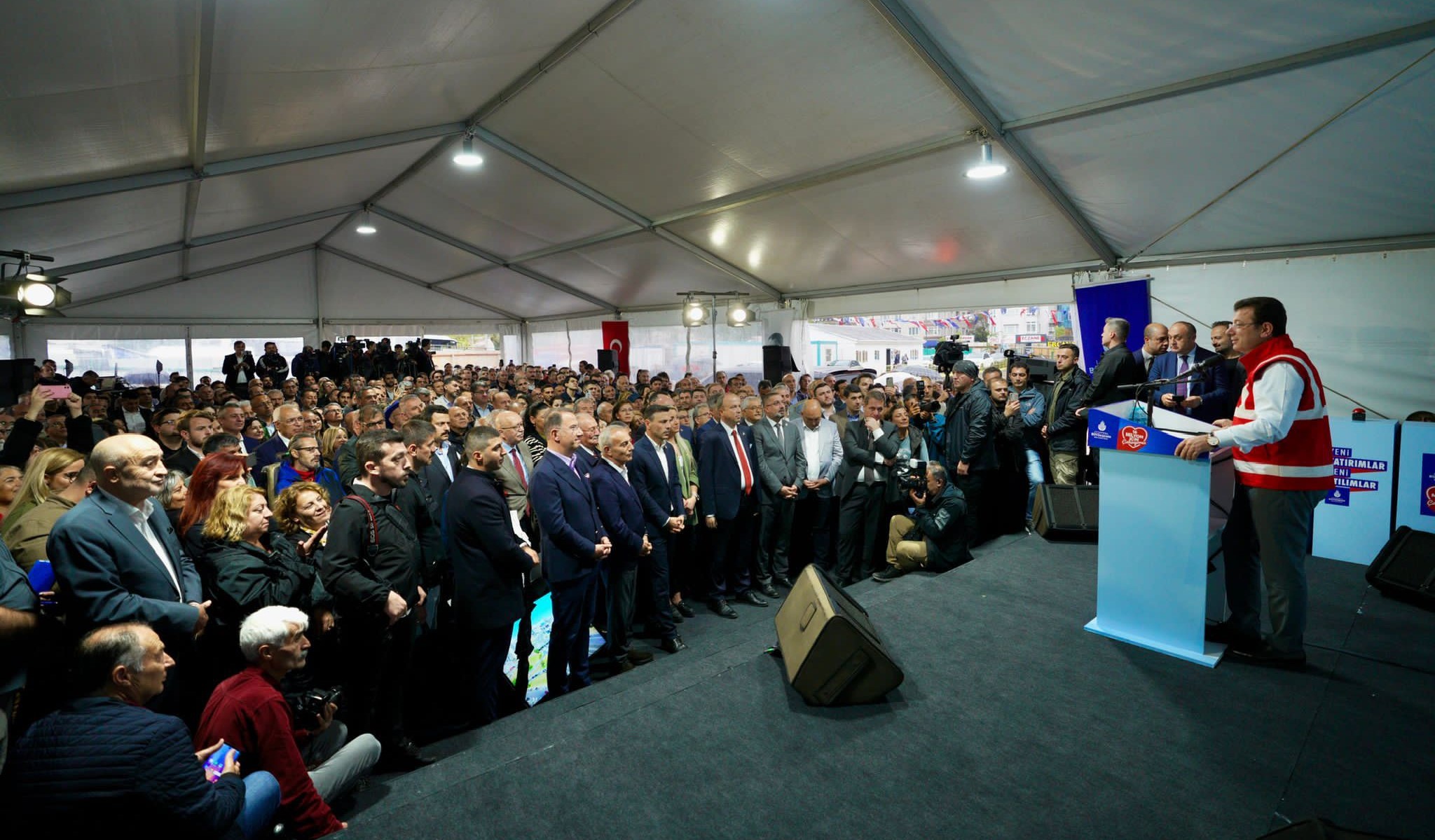 Avcılar’da, İstanbul Üniversitesi’ndeki eğitim ve spor hayatının bir bölümünün geçtiğini aktaran İmamoğlu, “Burada okurken, ister istemez burasıyla, Avcılar’la bağlarımız oluyor. Örneğin; buradaki henüz stat olmadan (eski Turgut Özal Stadyumu), toprak haliyle, o toprak sahada, öylesine gelip top peşinde koşmak değil, resmi maçlar oynamış bir kardeşiniz, hemşehrinizim. Az önce Belediye Başkanımızın (Turan Hançerli) üzerine basa basa anlattığı buradaki caminin (Silivri açıklarında 26 Eylül 2019 tarihinde meydana gelen 5.8 büyüklüğündeki depremde ağır hasar gören ve yıkılan 40 yıllık Hacı Ahmet Tükenmez Camii) de cemaatiyim. Dolayısıyla süreci iyi anlamak lazım. Bir caminin yapılması engelleniyor. Yazıklar olsun. Defalarca içinde bulunduğum bu cami, yıllar önce yapılmış ama ne yazık ki depreme dayanıksız olduğu için Silivri’deki sallantıdan sonra yıkılması öngörülmüş. O günden itibaren süreci devam ettiriyoruz” dedi.