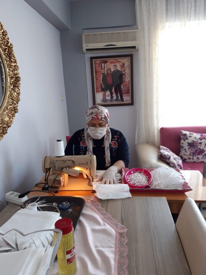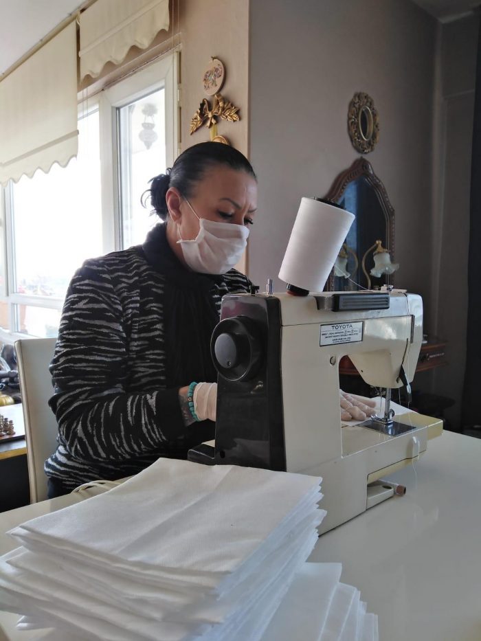 Ayvalık Kent Konseyi Kadın Meclisi, AYKEP kadınları, Atatürkçü Düşünce Derneği’nin kadınlari, Mahalle Evlerindeki kadınlarımız ve tüm gönüllü kadınlarımız hatta eşleri maske dikimi için seferber oldular.