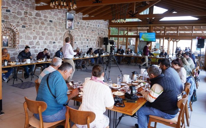 Yeni doğan bebeklere yönelik “Hoş Geldin Bebek” sosyal sorumluluk projesine de değinen Başkan Ergin Eğitime Destek Derneği sayesinde kent dışında okuyan 130 öğrenciye her ay 400 lira maddi katkı sağlandığını hatırlattı. En büyük hedeflerinin ise UNESCO’nun Endüstriyel Miras geçici listesinde yer alan Ayvalık’ın kalıcı listeye girmesini sağlamak olduğunu vurgulayan Başkan Ergin, pandemi döneminde gündeme getirdikleri “Ayvalık Modeli”nin pek çok turizm beldesine örnek olduğunu belirtti. Başkan Ergin toplantı sonunda katılımcılara, zeytinyağı, zeytin ve zeytin fidanından oluşan anı paketi hediye etti.