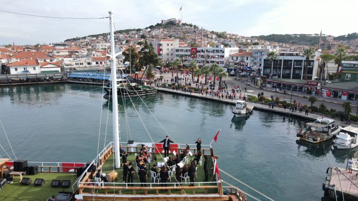 Kenti boydan boya geçen Atatürk Caddesi, Talatpaşa Caddesi ve Cumhuriyet Meydanı büyük bayram için hazırlandı. Türk bayraklarıyla donatılan gezi teknesinde Ayvalık Güzel Sanatlar Lisesi öğrencileri kordon boyunca konser verdi. Sahildeki vatandaşlar marşlara eşlik etti, adeta Ayvalık’ta dev bir koro oluşturuldu.