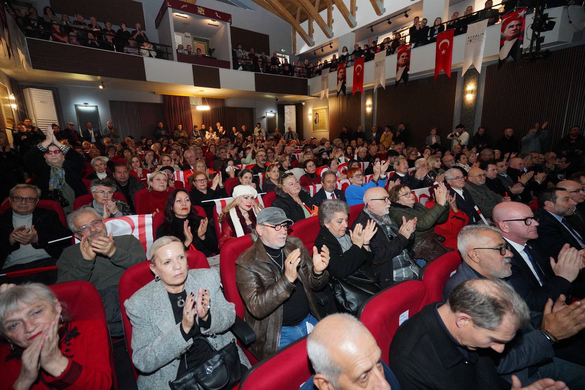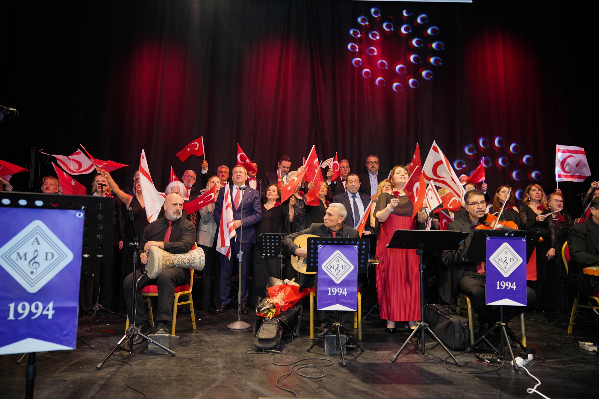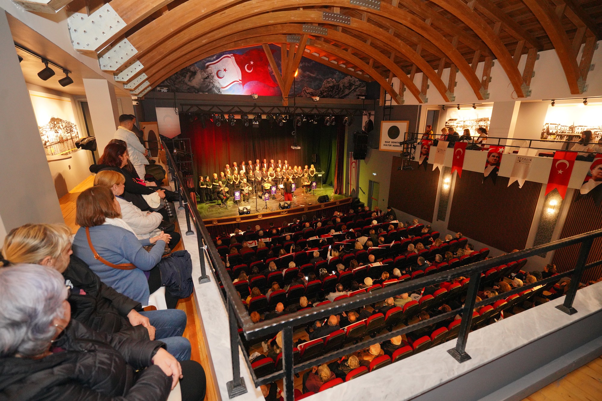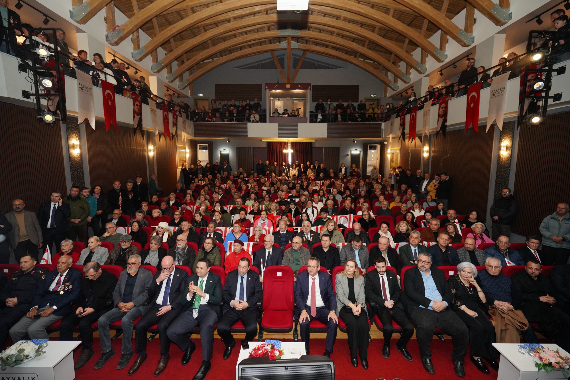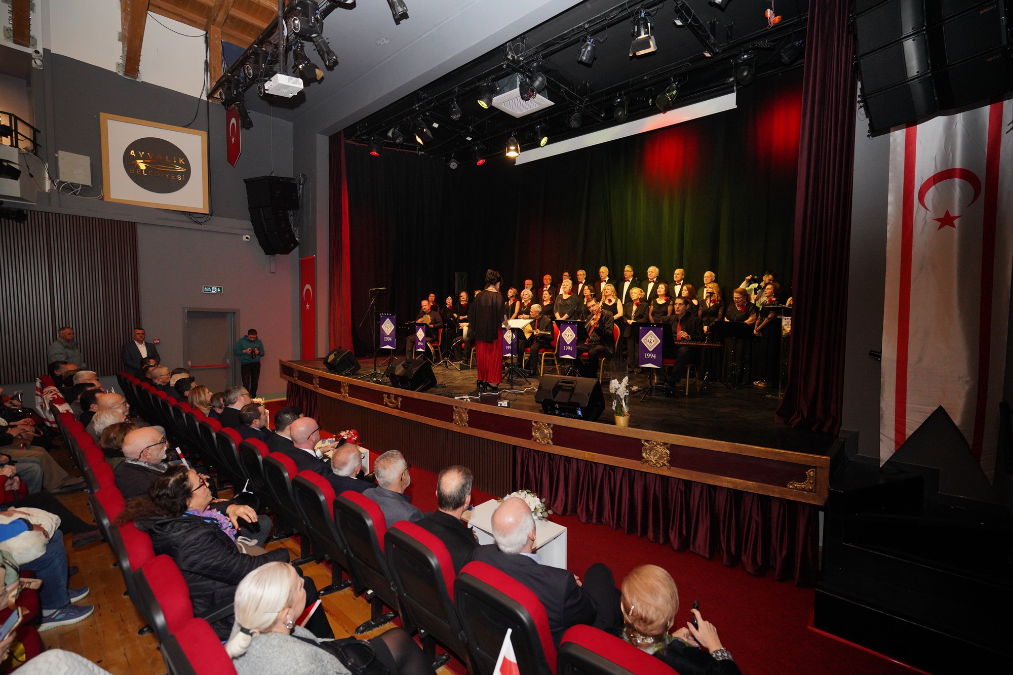 Konuşmaların ve kurdele kesiminin ardından protokol üyeleri sahneye çıkarak Ayvalık Müzik Derneği eşliğinde “Bir Başkadır Benim Memleketim” şarkısını hep bir ağızdan seslendirdi. Salonu dolduran sanatseverler de Türkiye ve Kuzey Kıbrıs Türk Cumhuriyeti bayraklarıyla eşlik ederek açılışa coşkulu bir final yaptı.
