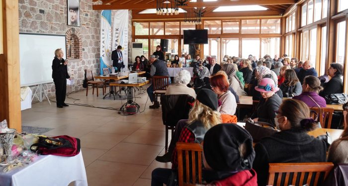 Toplantıda, eski, Altınova Belediye Başkanı Alaattin Süberoğlu, kendi kaleminden çıkan mübadillerle ilgili şiirini okudu, ardından slayt gösterisi eşliğinde belgesel yönetmeni Zeynep Kazancıgil’in yaptığı Ayvalık’ta yaşamış lider kadınların yaşamlarını anlatan tanıtımı ilgiyle izlendi.