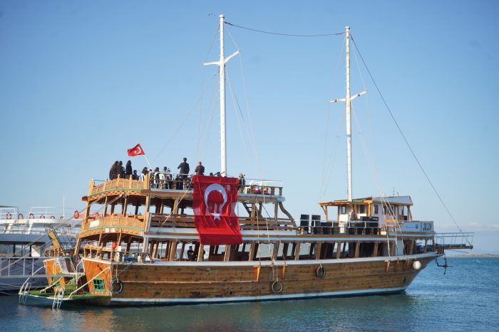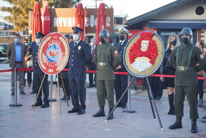 Ayvalık Kaymakamlığı, Garnizon Komutanlığı ve Ayvalık Belediyesi’nin Atatürk anıtına çelenklerini sunmasının ardından saat 09.05’te iki dakikalık saygı duruşuyla tören sona erdi. Törenin ardından Sebahat Cihan Şişman Güzel Sanatlar Lisesi öğrencileri öğretmen Çağrı Çalışır şefliğinde tekneden müzik dinletisi gerçekleştirdi.