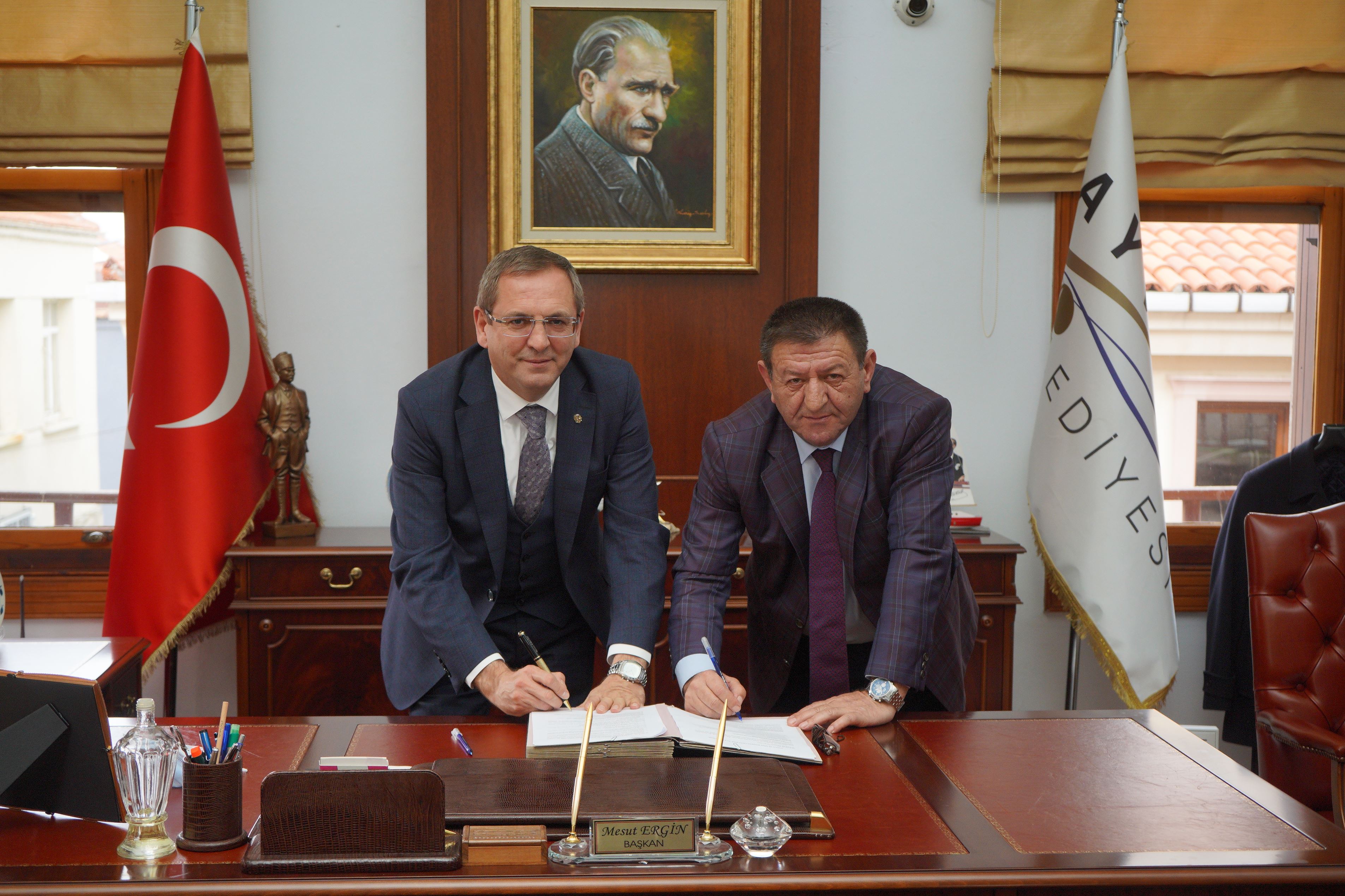 Ayvalık için gecesini gündüzüne katan, gerektiğinde 24 saat aralıksız alın teri döken işçilerin emeklerinin karşılığını aldığını belirten Ayvalık Belediye Başkanı Mesut Ergin, “2019 yılının Nisan ayında görevi devraldığımızda 300 milyon liralık borç yükünü kucağımızda bulduk. Bugün artık gelir gider dengesinde, gelirler lehine artışı sağlandık. Göğsümüzü gererek toplu sözleşmeler yapabiliyoruz.. Çalışanların maaşlarını zamanında aldığı, emekli olan işçilerin tazminatlarının gününde yatırıldığı, piyasaya olan borçların gününde ödendiği güvenilir bir belediye konumuna geldik” dedi.