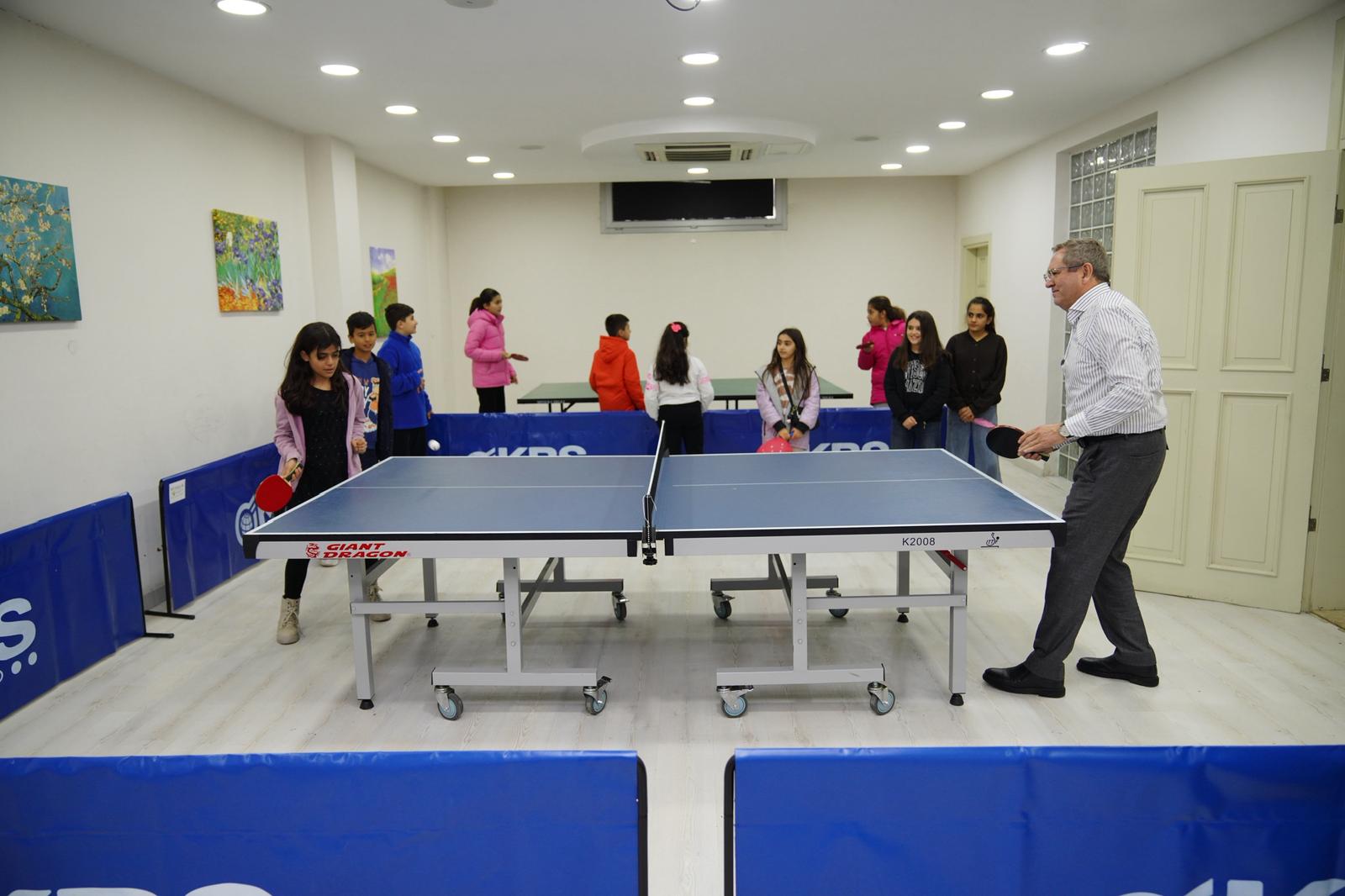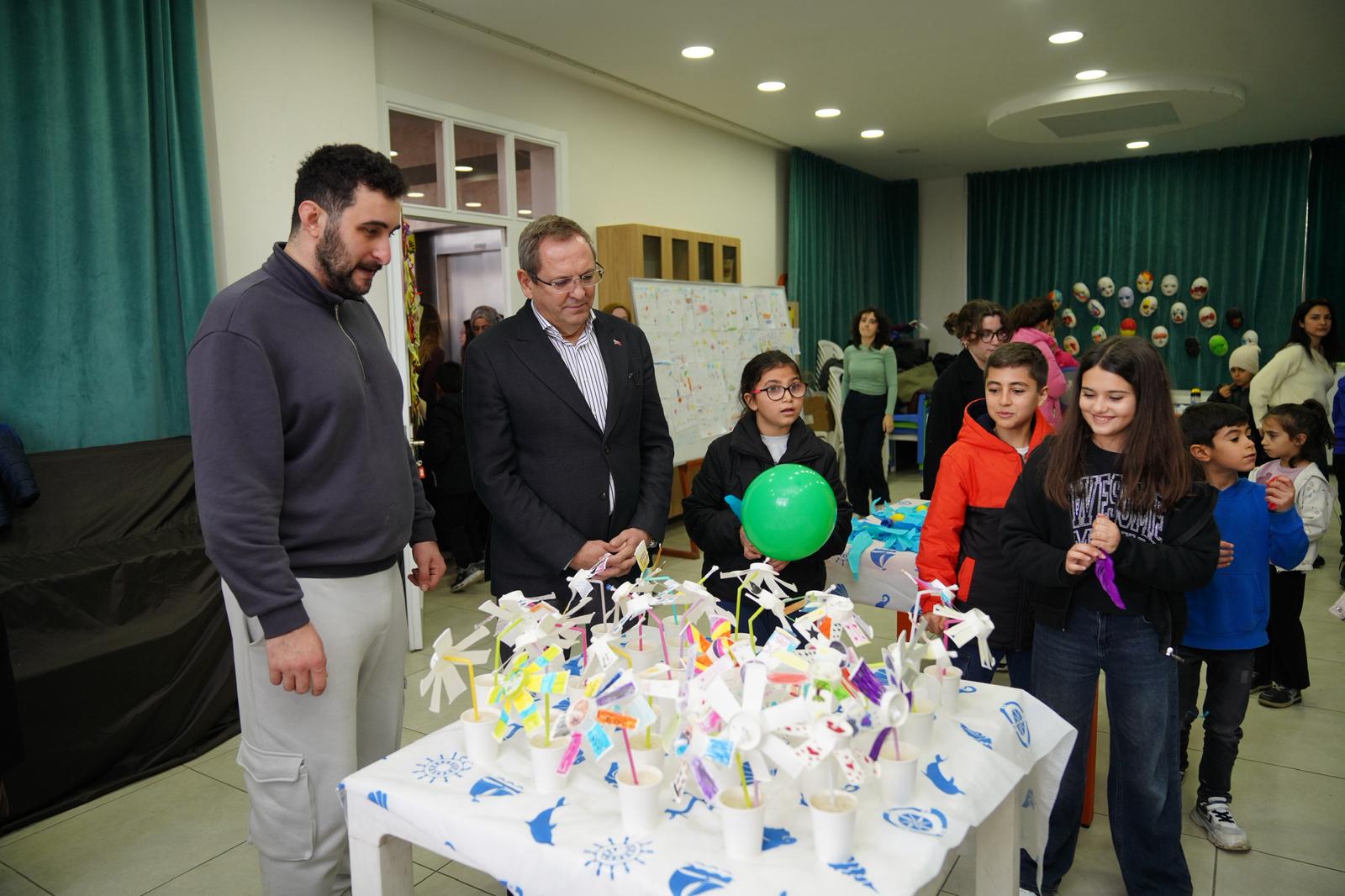 Ayvalık Belediye Başkanı Mesut Ergin de bu anlamlı çalışmaları yerinde inceleyerek çocuklarla keyifli anlar paylaştı. Resim sergilerini büyük bir beğeniyle gezen Başkan Ergin, çocuklarla birlikte masa tenisi oynayarak onlara destek oldu.